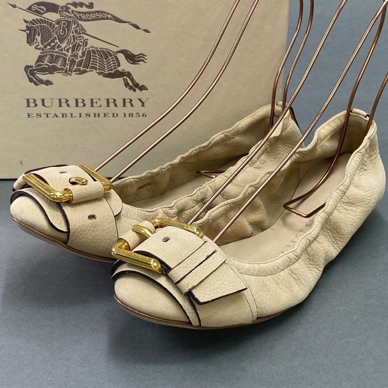 7a10 《極美品》 BURBERRY バーバリー ゴールドピンバックル レザーバレエシューズ 37 ベージュ Leather イタリア製 フラット