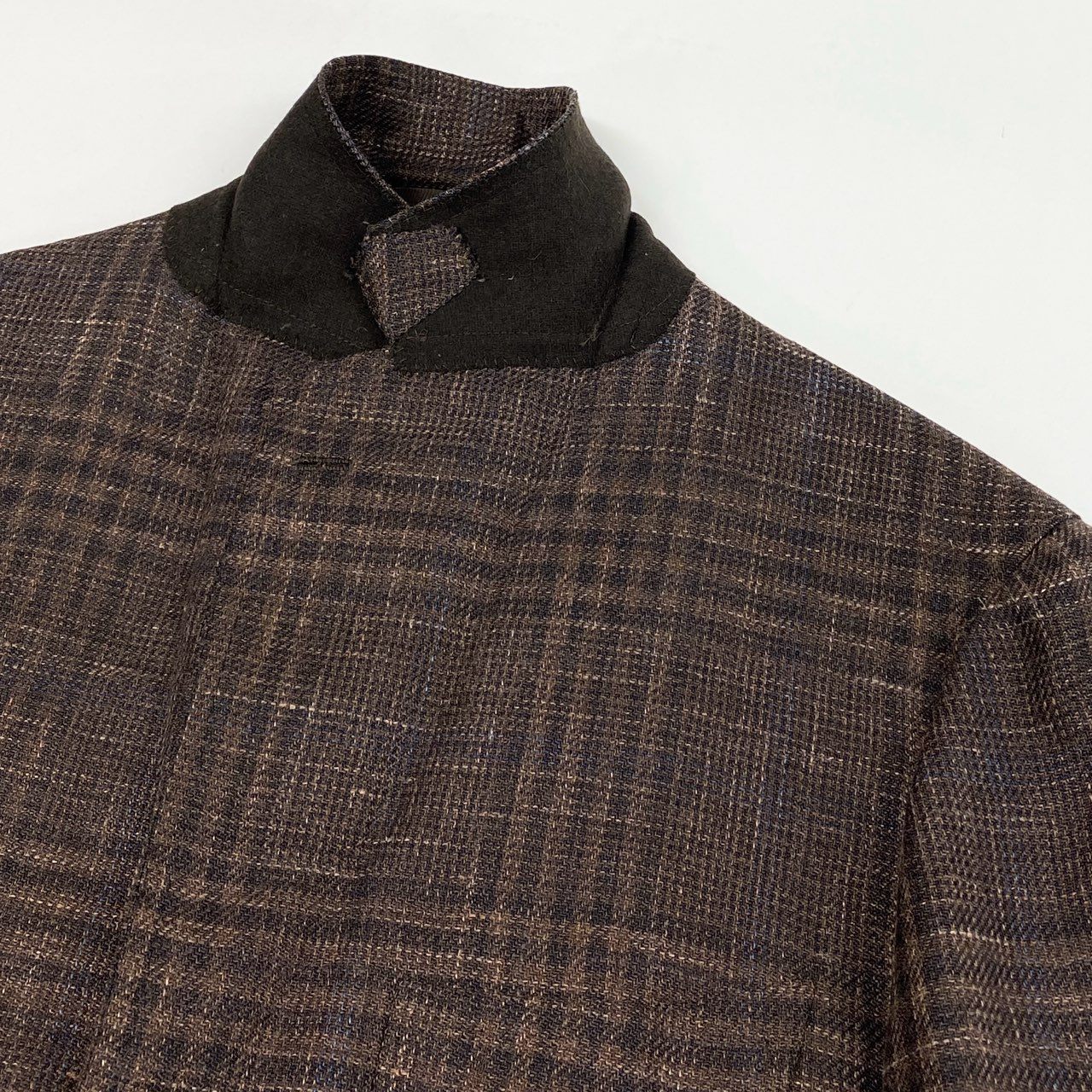 RING JACKET MEISTERらしい仕立ての良さが際立つ、ブラウン系カラーのテーラードジャケットです。細かなチェック柄が上品で、落ち着いたクラシックな印象を与えます。素材は軽やかでドライタッチなサマージャケット仕様となっており、暖かい季節でも快適に着用可能です。シングルブレストの端正なデザインで、オン・オフ問わず活躍します。スラックスはもちろん、デニムやチノと合わせた大人のカジュアルスタイルにもおすすめの一着です。