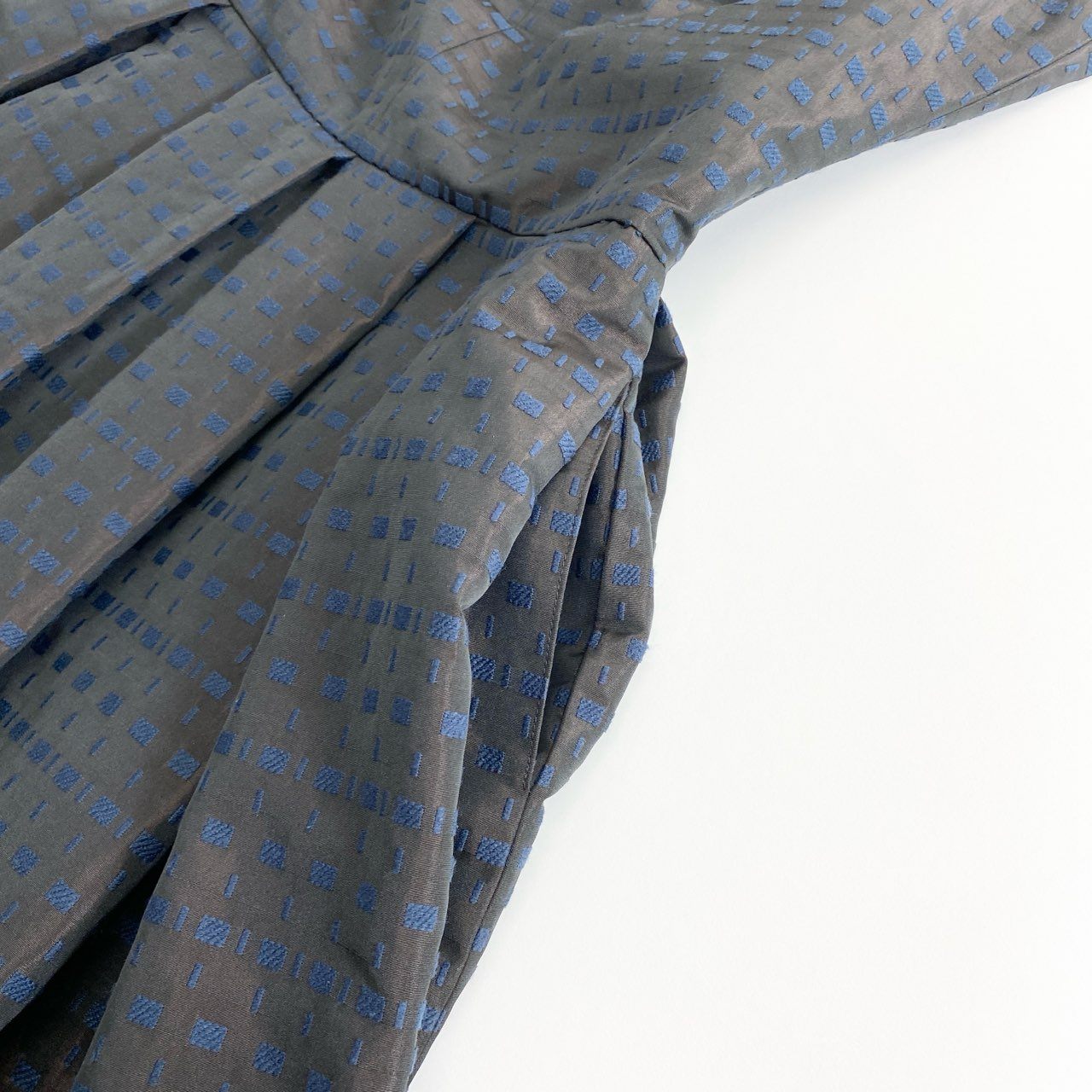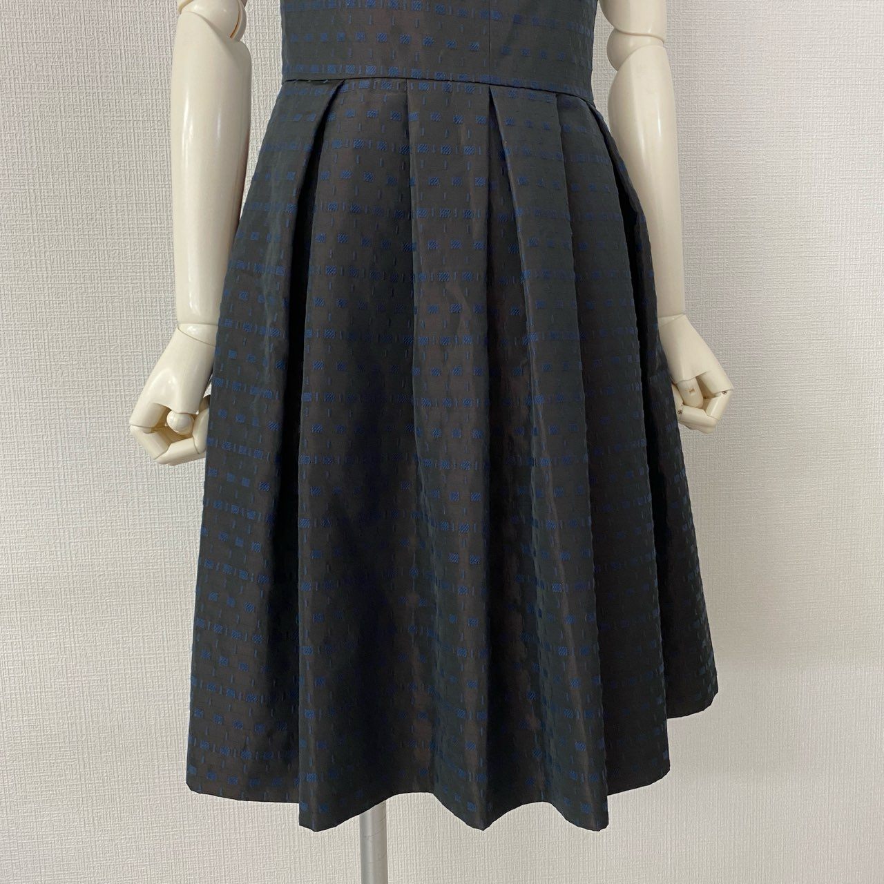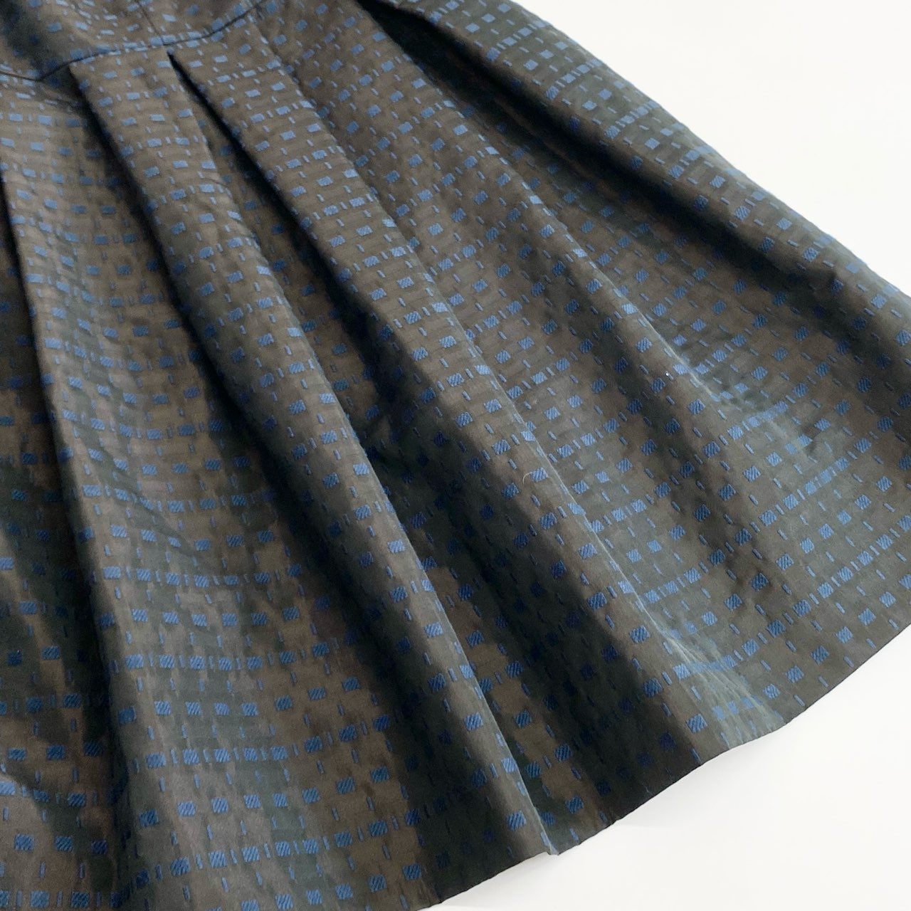 2f14 【美品】 日本製 Rene ルネ イタリア製生地 半袖ワンピース ドレスワンピース タックボリュームスカート リボン装飾 6536140 サイズ36 ブラウン系×ブルー レディース