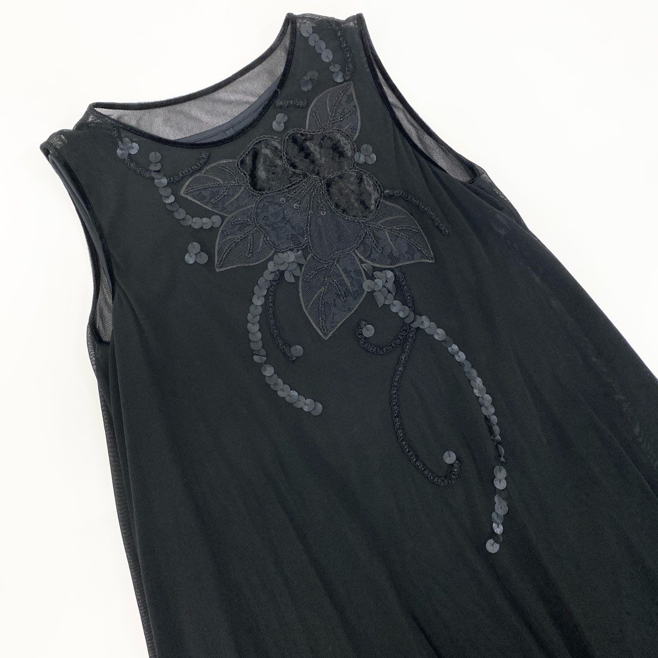 18k20《美品》 TOKUKO 1er VOL トクコプルミエヴォル ノースリーブワンピース ドレスワンピース 花柄刺繡 スパンコール装飾 レディース 女性用 9 ブラックu02t