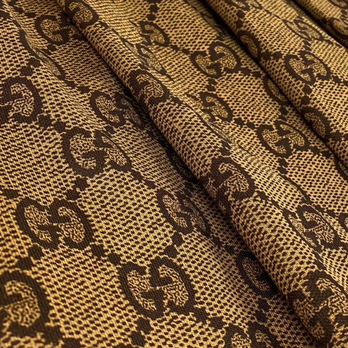 落ち着いたベージュブラウンをベースに、アイコニックなGGモノグラム柄が全面に施されたGUCCIのプリーツスカートです。 マットで柔らかさのある素材感に、細かなプリーツが上品な動きを演出します。 ウエストはドローコード仕様で、タッセル付きコードがさりげないアクセントになっています。 シンプルなニットやブラウスと合わせるだけで存在感のあるスタイリングが完成し、デイリーからきれいめカジュアルまで幅広く活躍する一着です。