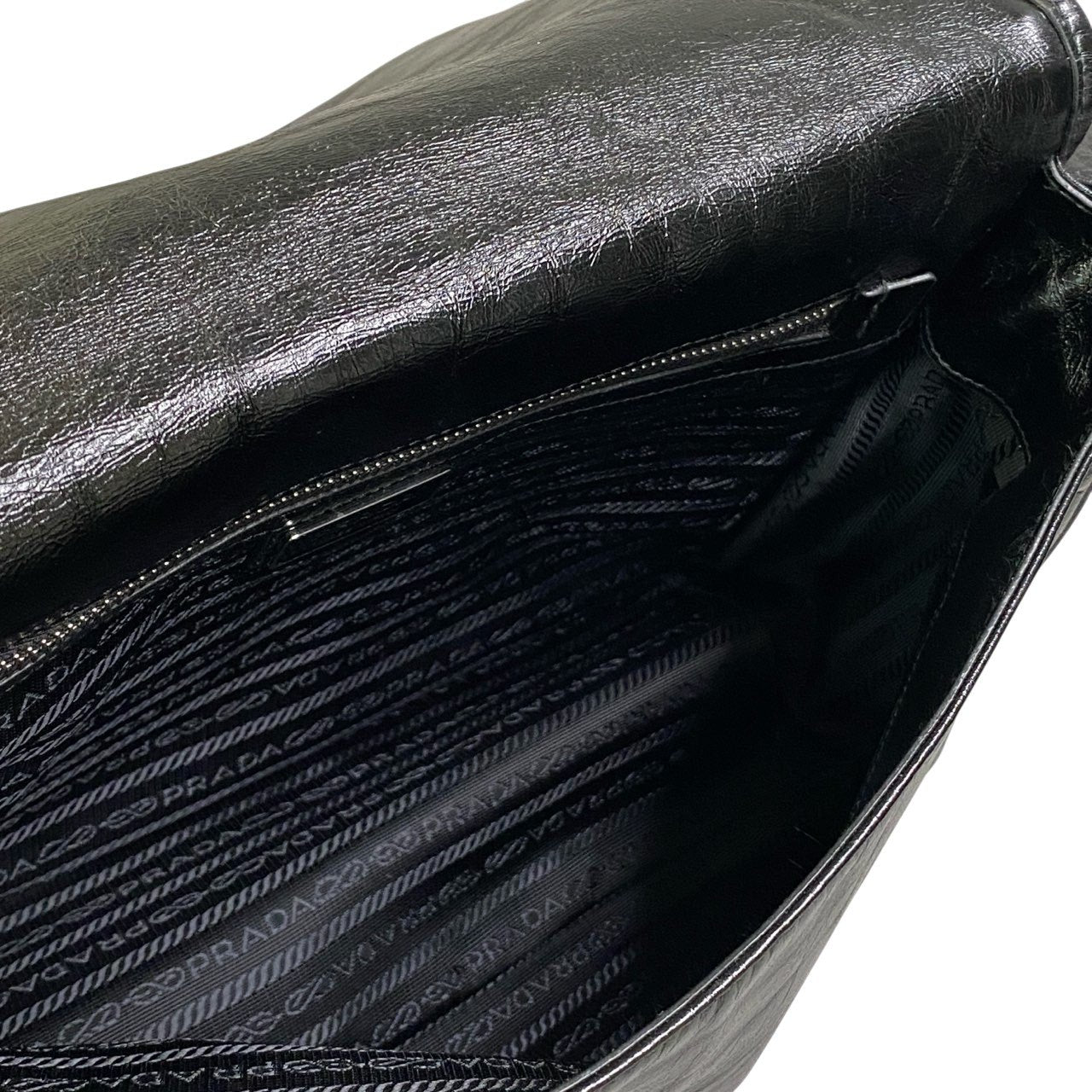 b17 【美品】PRADA プラダ 2VD073 ソフトルックスレザー ショルダーバッグ 三角ロゴプレート ブラック メンズ 鞄ta1