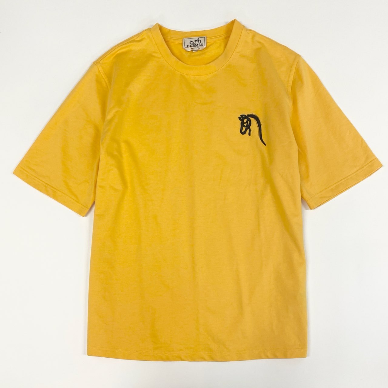 62k20 HERMES エルメス ホースパッチ Tシャツ XL イエロー 大きいサイズ カットソー 半袖TEE 馬 イタリア製