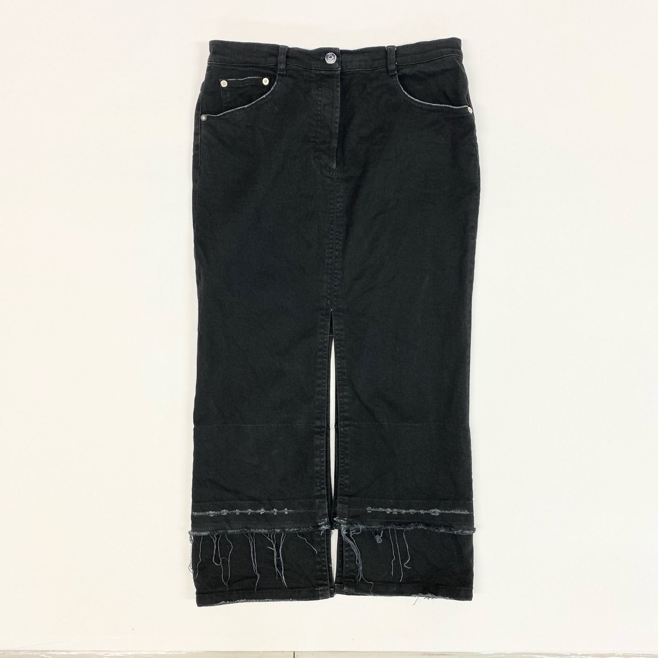ヌメロ ヴェントゥーノ(N°21)のブラックデニムロングスカート。マットな質感のコットンデニム素材に、裾のカットオフ&フリンジ加工を施したデザインが特徴です。フロントスリットが女性らしい抜け感を演出し、歩くたびにシルエットに動きをプラス。カジュアルなTシャツから上品なブラウスまで幅広く合わせやすく、モード感とリラックス感を兼ね備えた一着です。