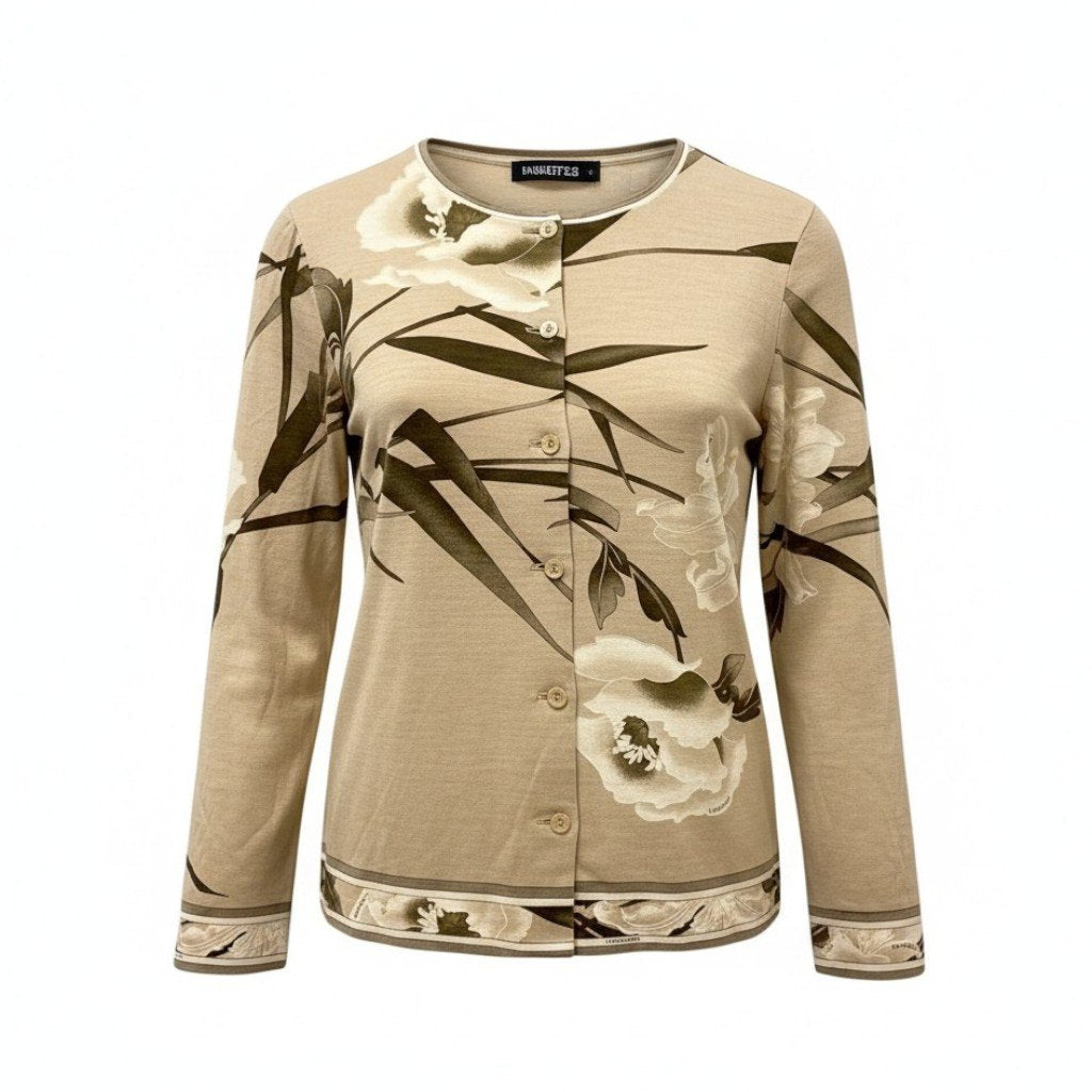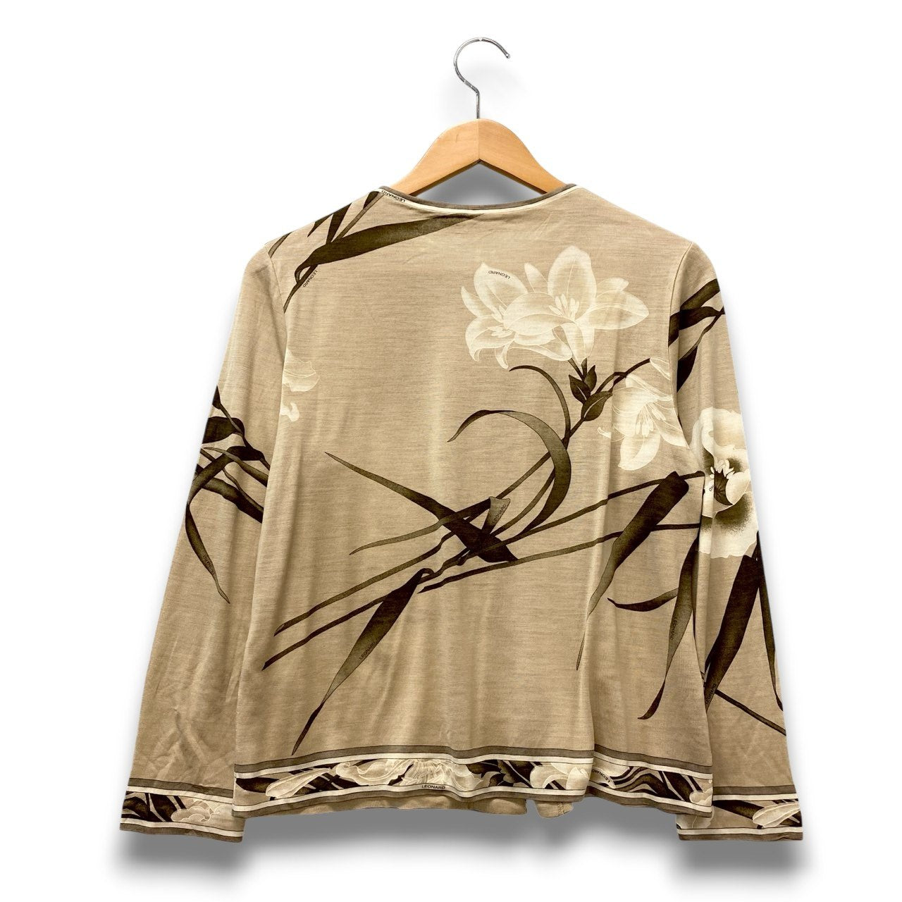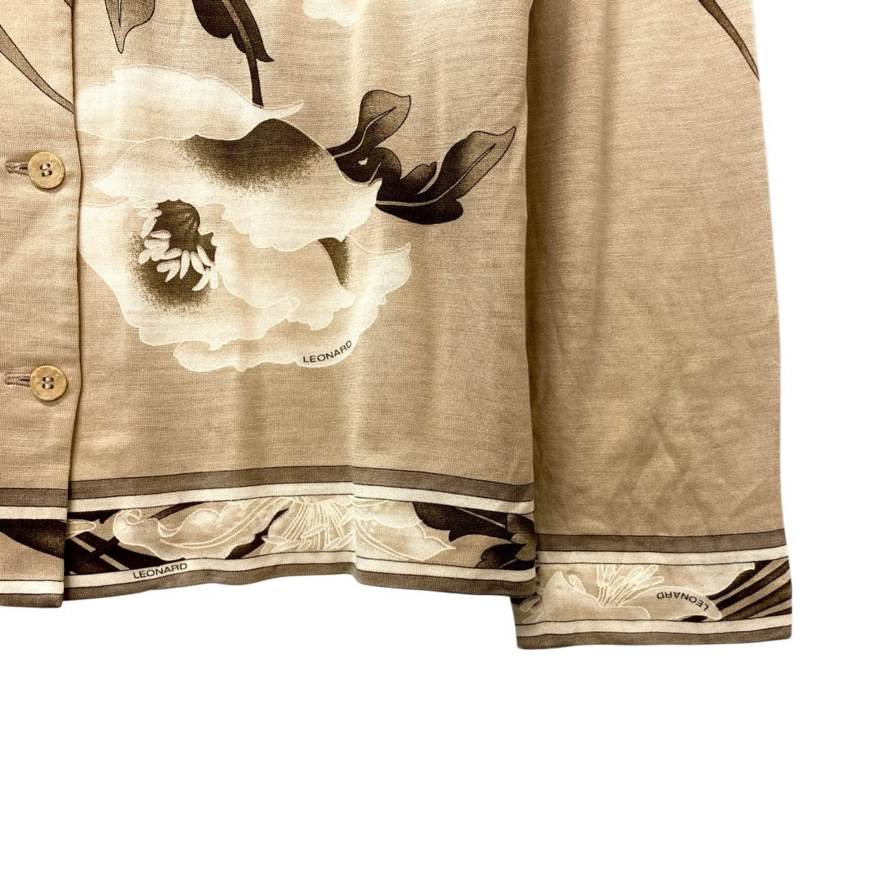 83b26 LEONARD レオナール ロングスリーブカーディガン 美しい花柄プリント 0369107 Lサイズ ベージュ レディース 女性用u02t