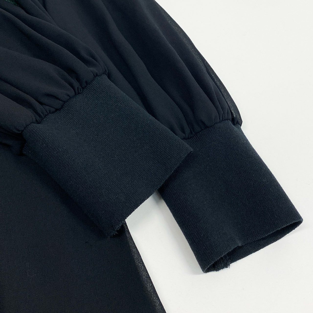 TOKUKO 1er VOLらしい、大ぶりの花柄刺繍モチーフが華やかなチュニックワンピースです。ブラックをベースにブルー・グリーン・ベージュの刺繍が立体的に映え、アート性の高い一着に仕上がっています。 袖から裾にかけては軽やかなシアーカットソー素材を使用し、動くほどに揺れる柔らかい表情が魅力。 ゆったりとしたシルエットで体型を拾いにくく、細身パンツやレギンスとの相性も抜群です。 一枚で華やかに決まる、デイリーにも特別なシーンにも使える主役級アイテムです。