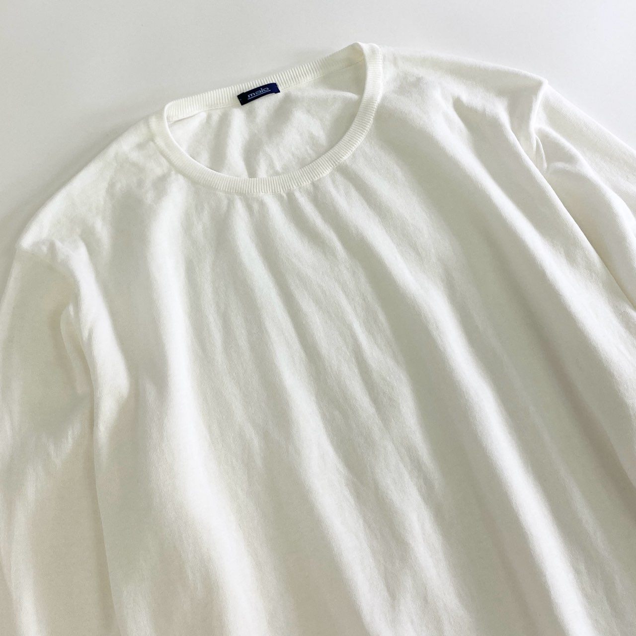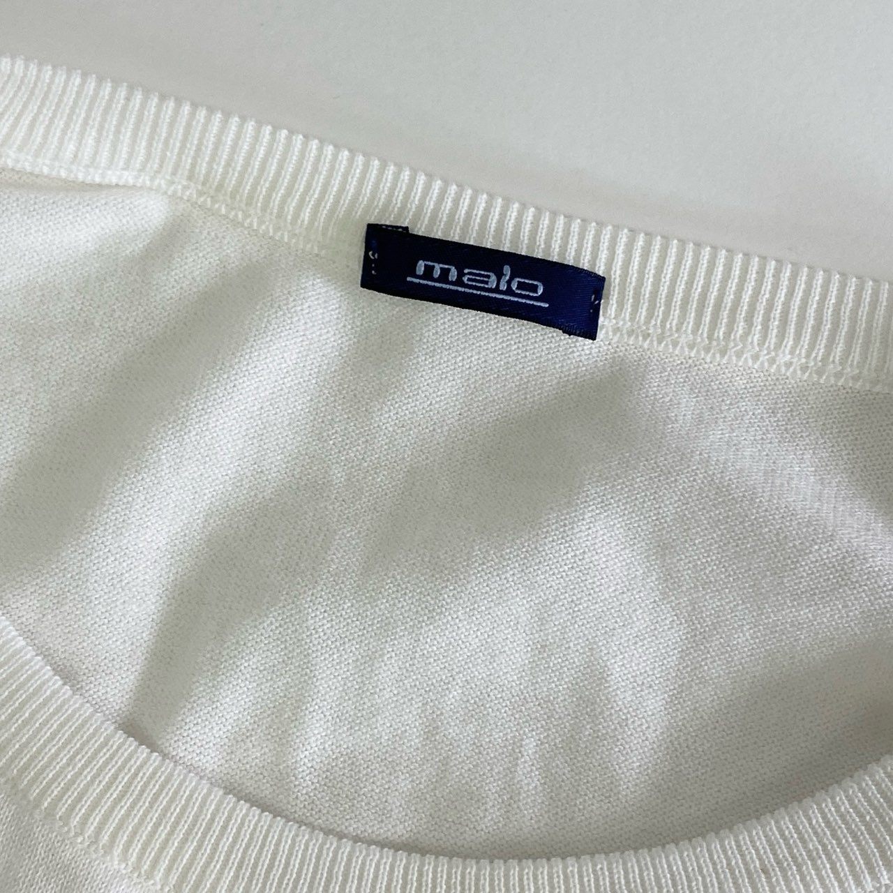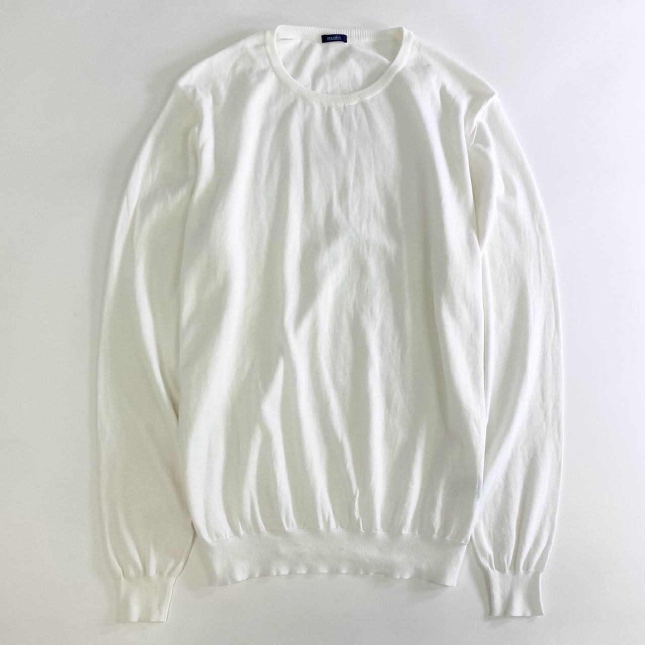 55j18 malo マーロ イタリア製 クルーネック コットンニットセーター ハイゲージ 50 ホワイト