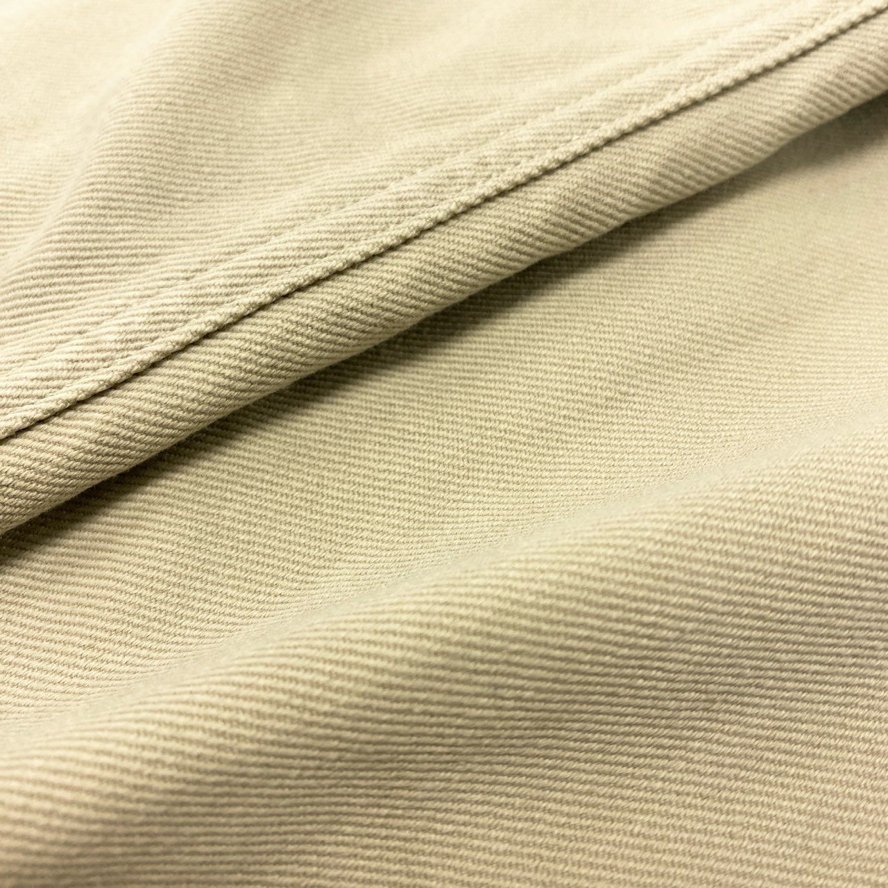 ミリタリー由来のクラシカルな雰囲気が魅力の、アリエルアイゼネ「M52チノ後期型」チノパンツ。落ち着いたベージュカラーとマットなコットンツイル生地が特徴で、経年変化も楽しめる上質な一本です。深い股上とツータック仕様により、腰まわりに立体感と品のあるシルエットを演出。カジュアルにもトラッドにも馴染み、シャツやジャケットとの相性も抜群です。