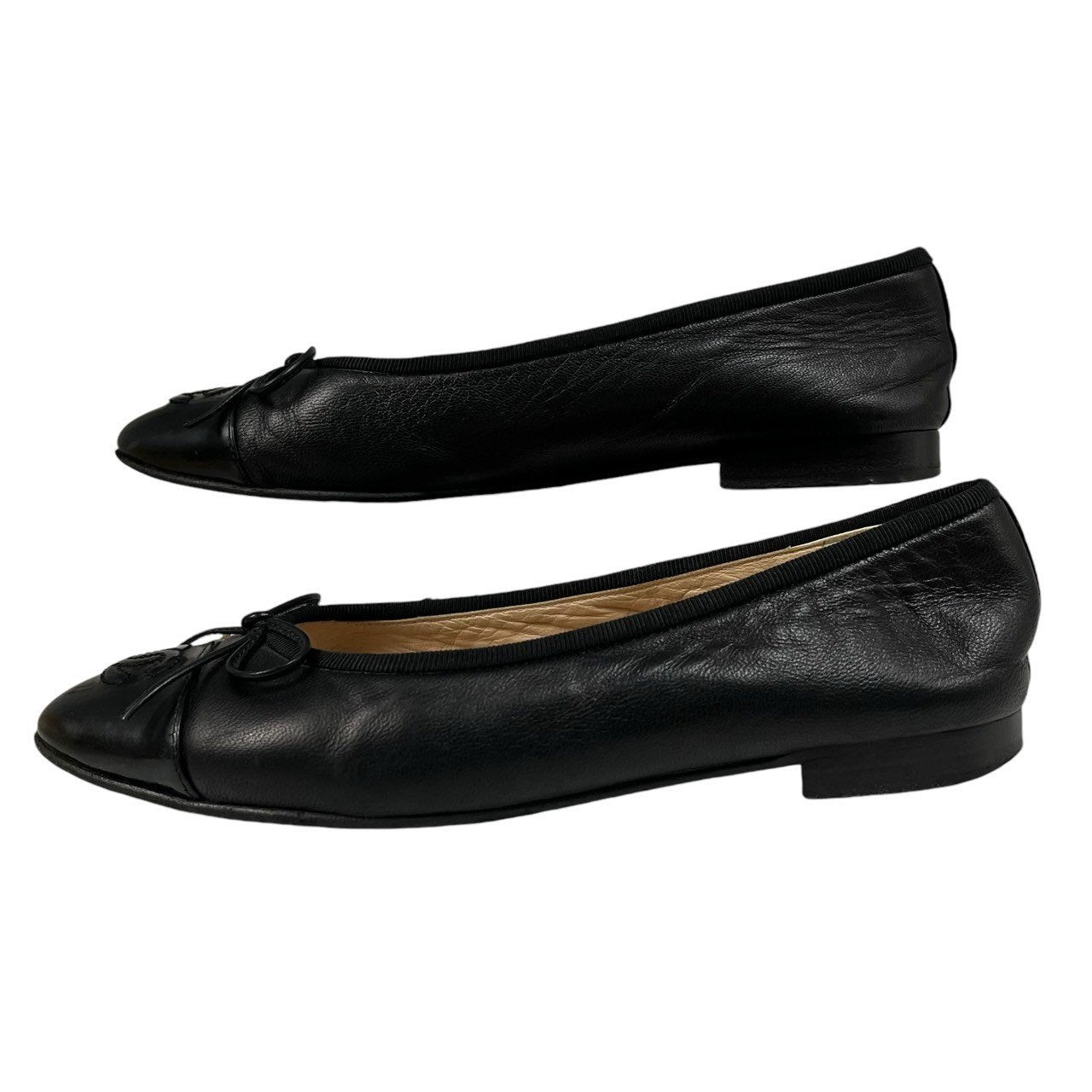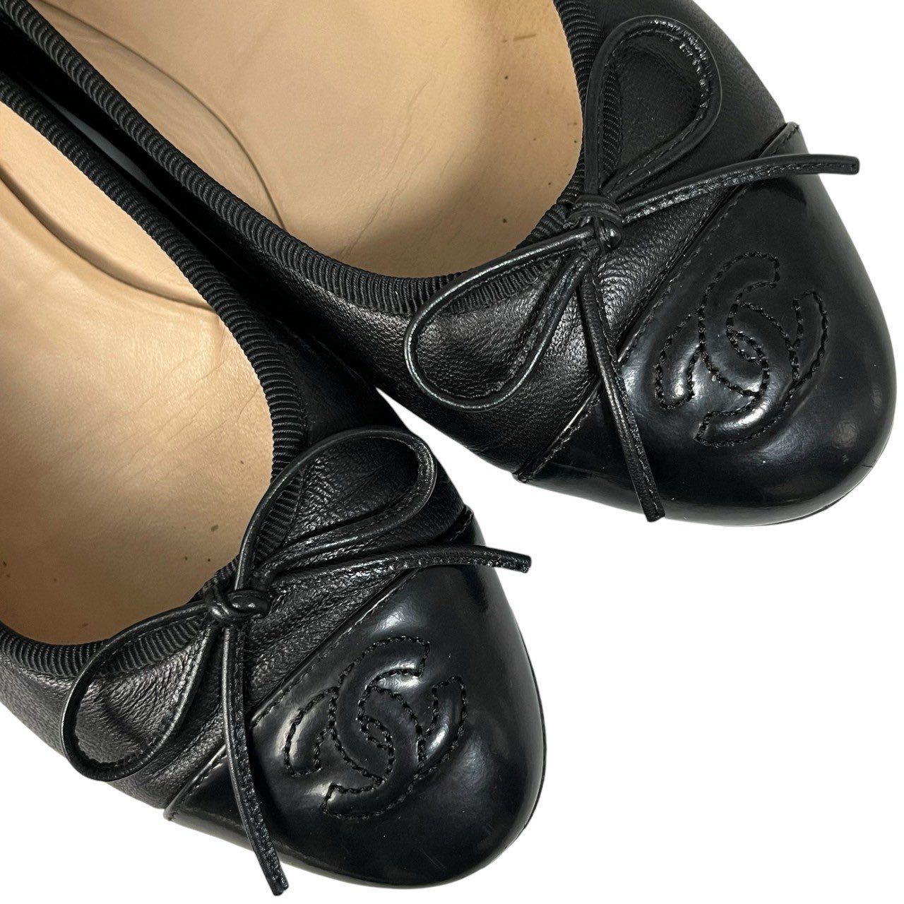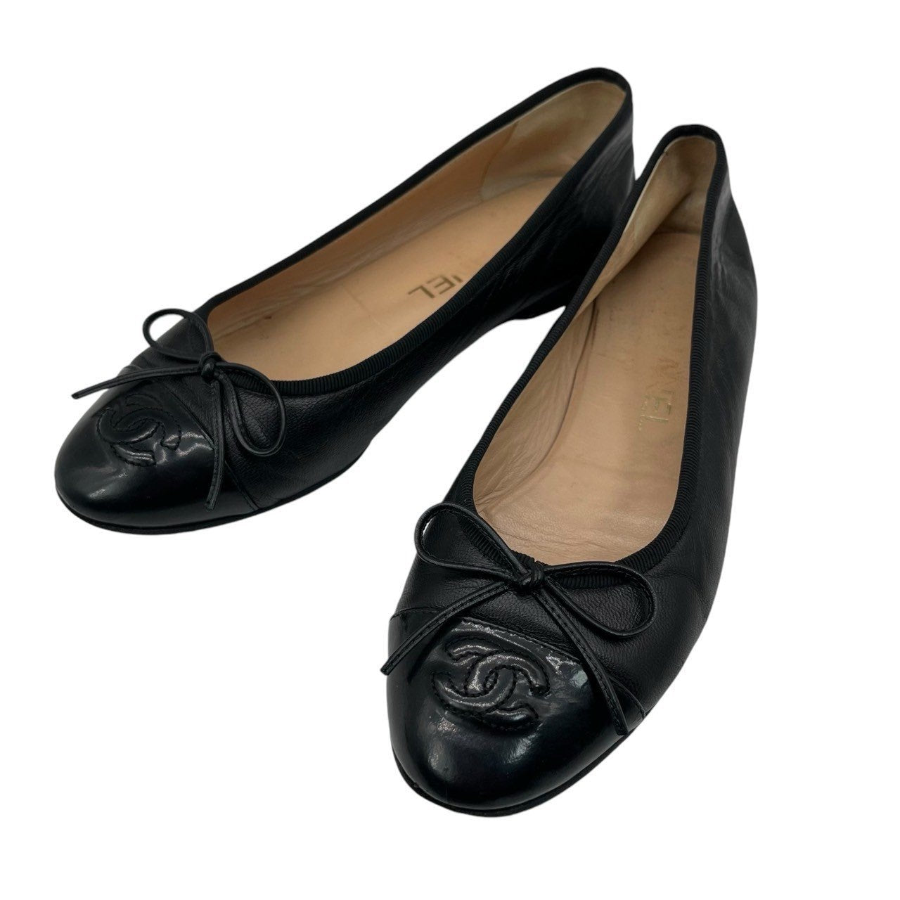 2L15 CHANEL シャネル ココマーク バレエシューズ 36 1/2 ブラック レザー エナメル フラットパンプス イタリア製 靴