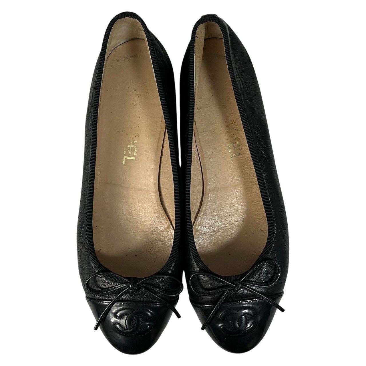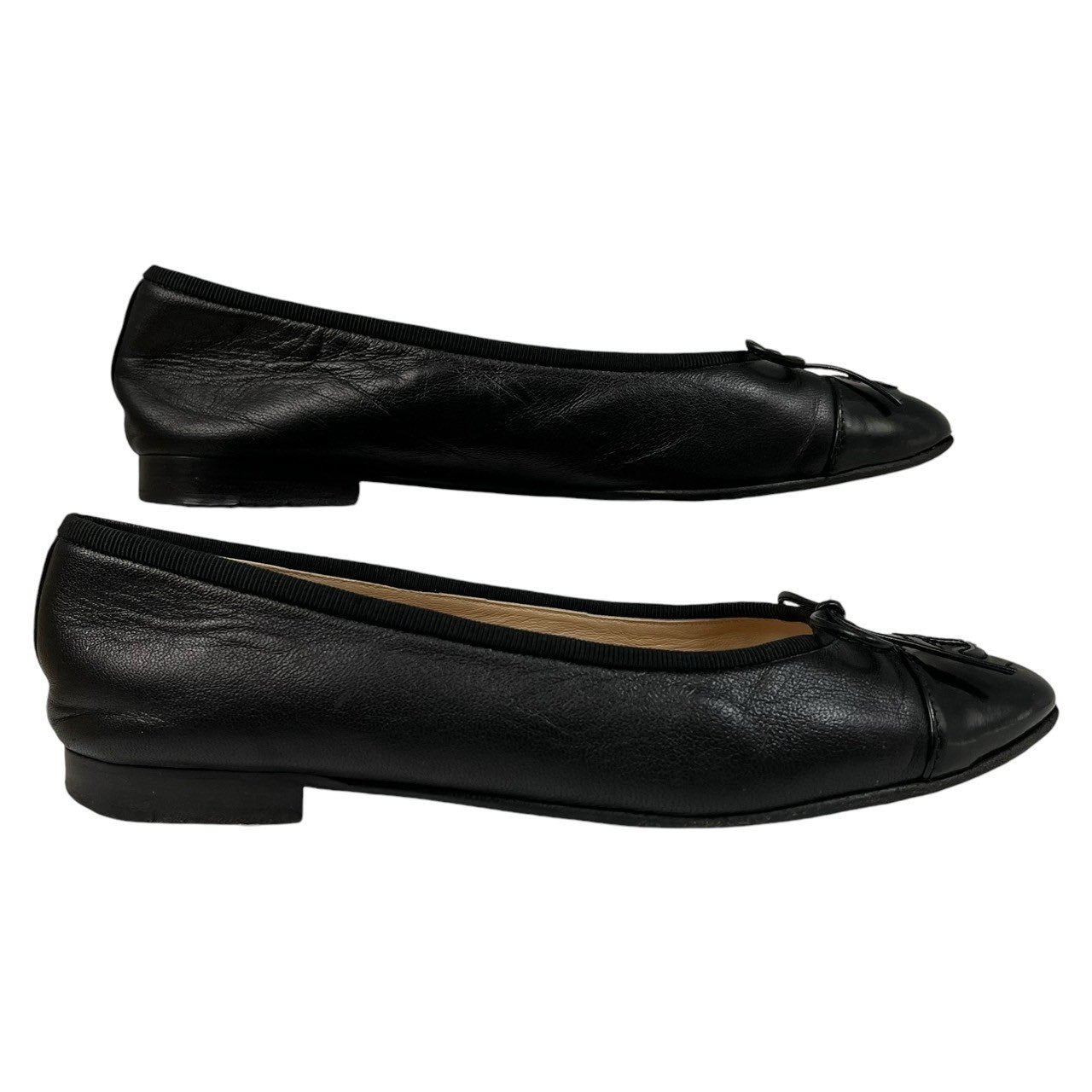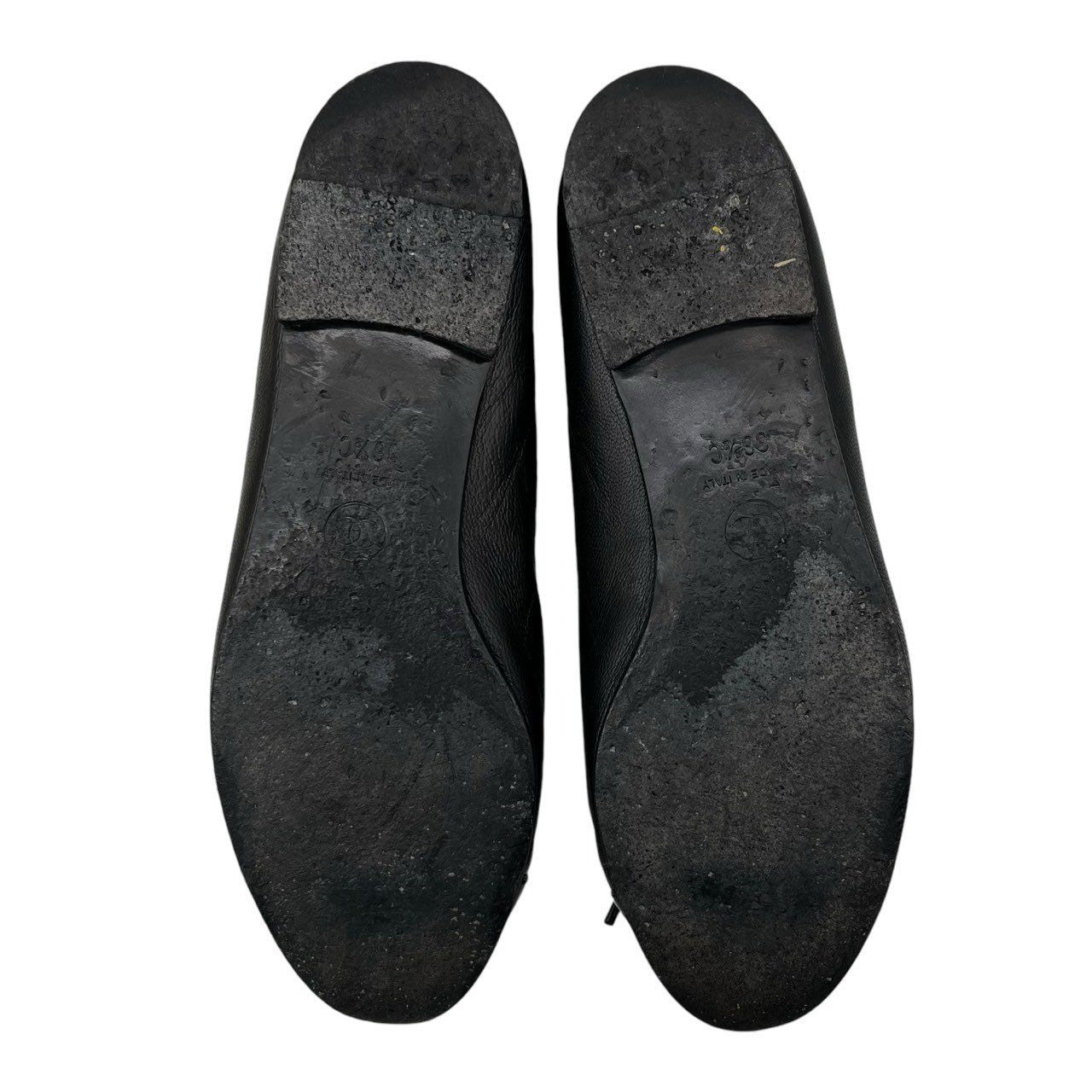 2L15 CHANEL シャネル ココマーク バレエシューズ 36 1/2 ブラック レザー エナメル フラットパンプス イタリア製 靴