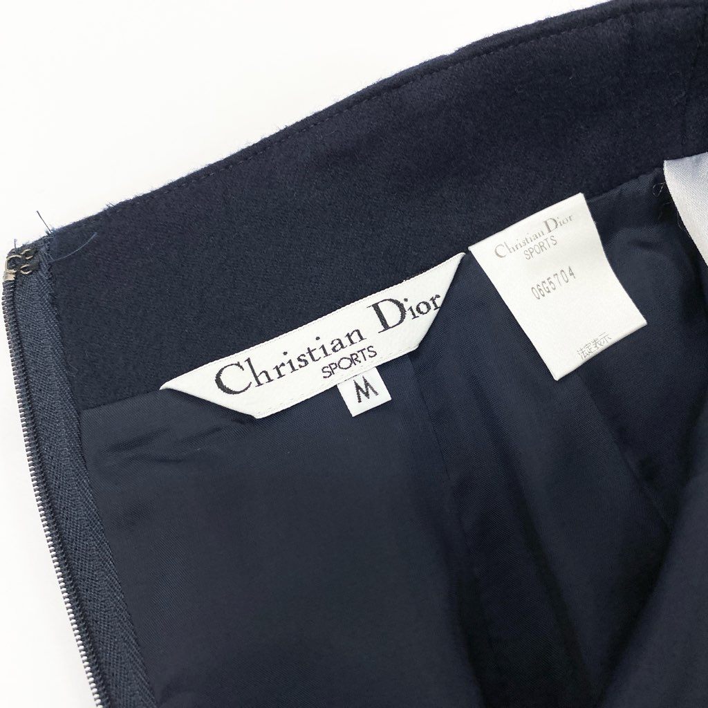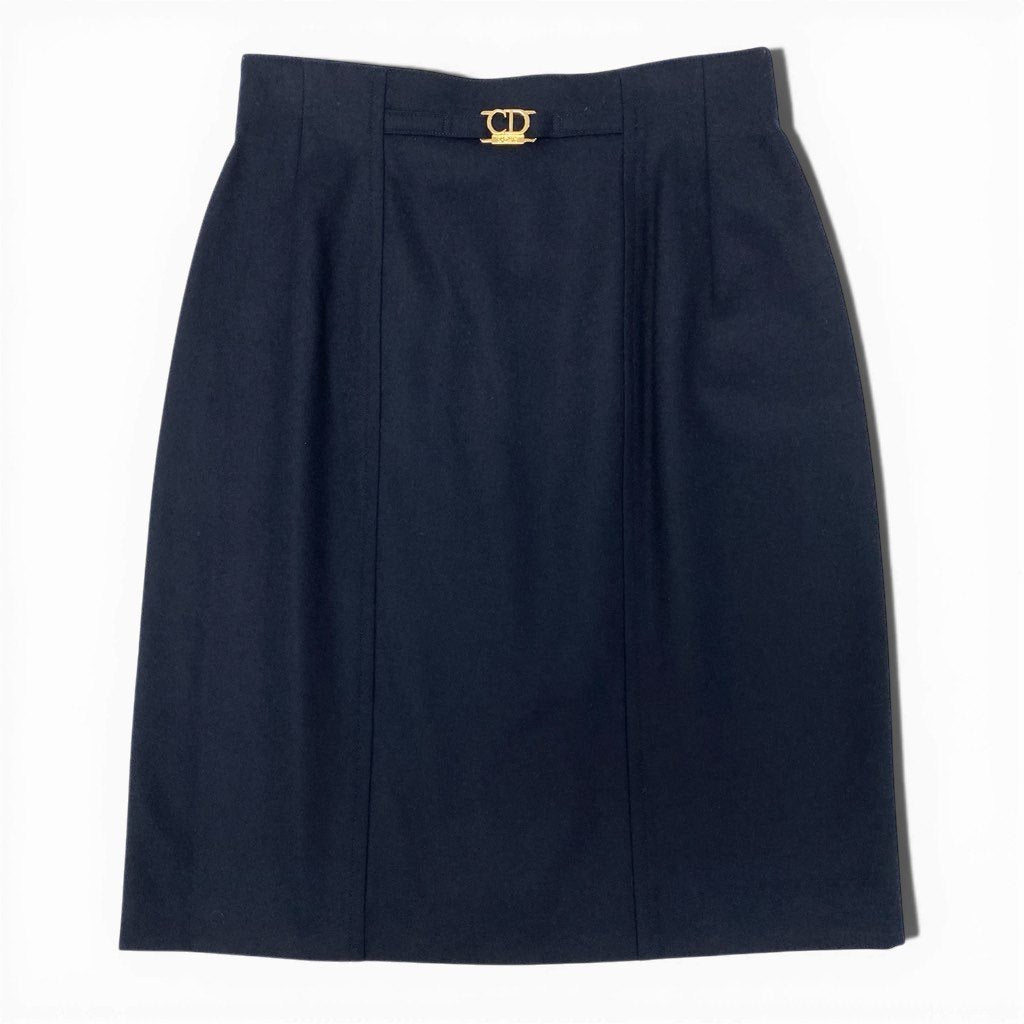 54l28【新品保管品】Christian Dior クリスチャンディオール Vintage ウールスカート タイトスカート ロゴ金具 Mサイズ ネイビー ウール100% レディース 女性用o07t