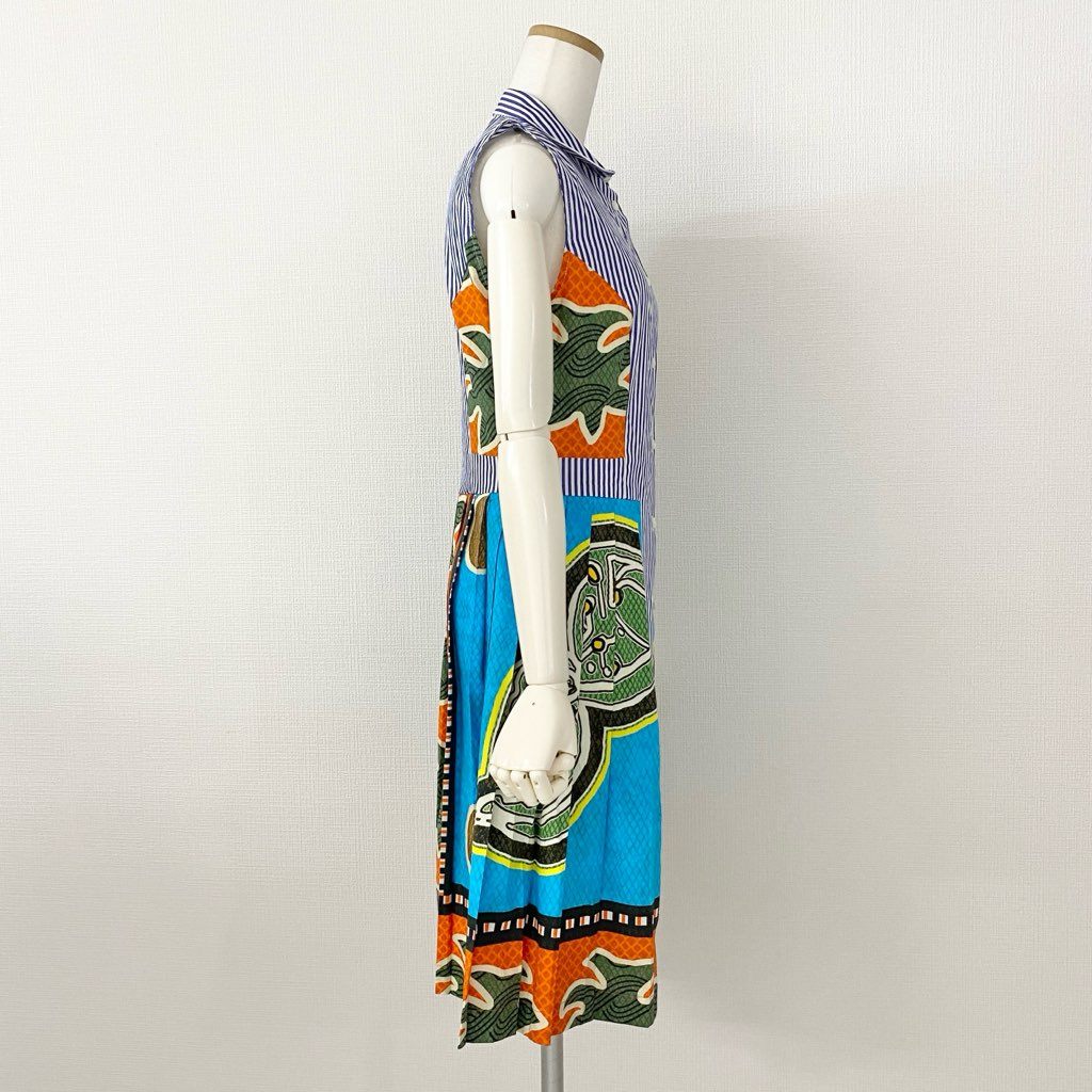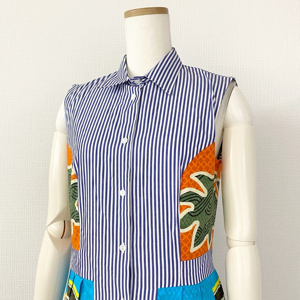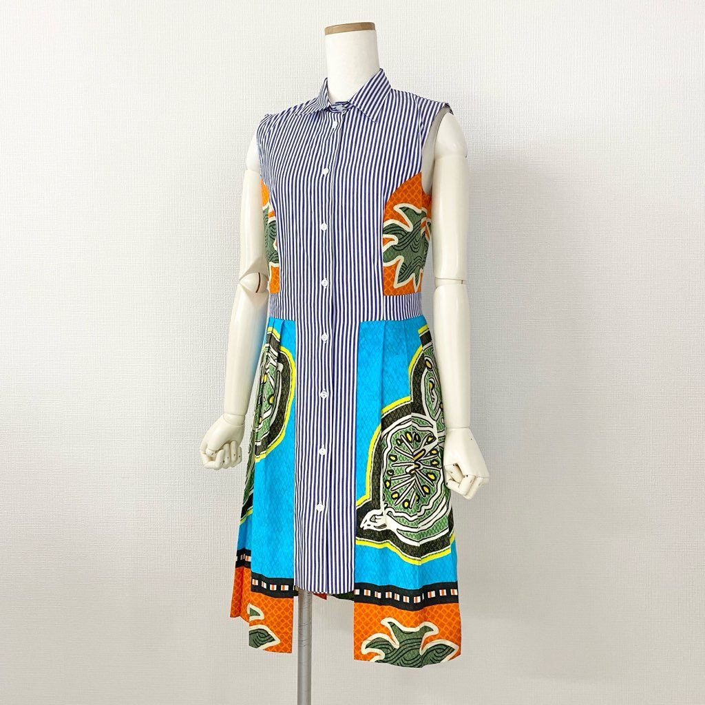 48f20 STELLA JEAN ステラジーン ノースリーブ フレアシャツワンピース プリーツ加工 ロングワンピース サイズ40 マルチカラー レディース 女性用