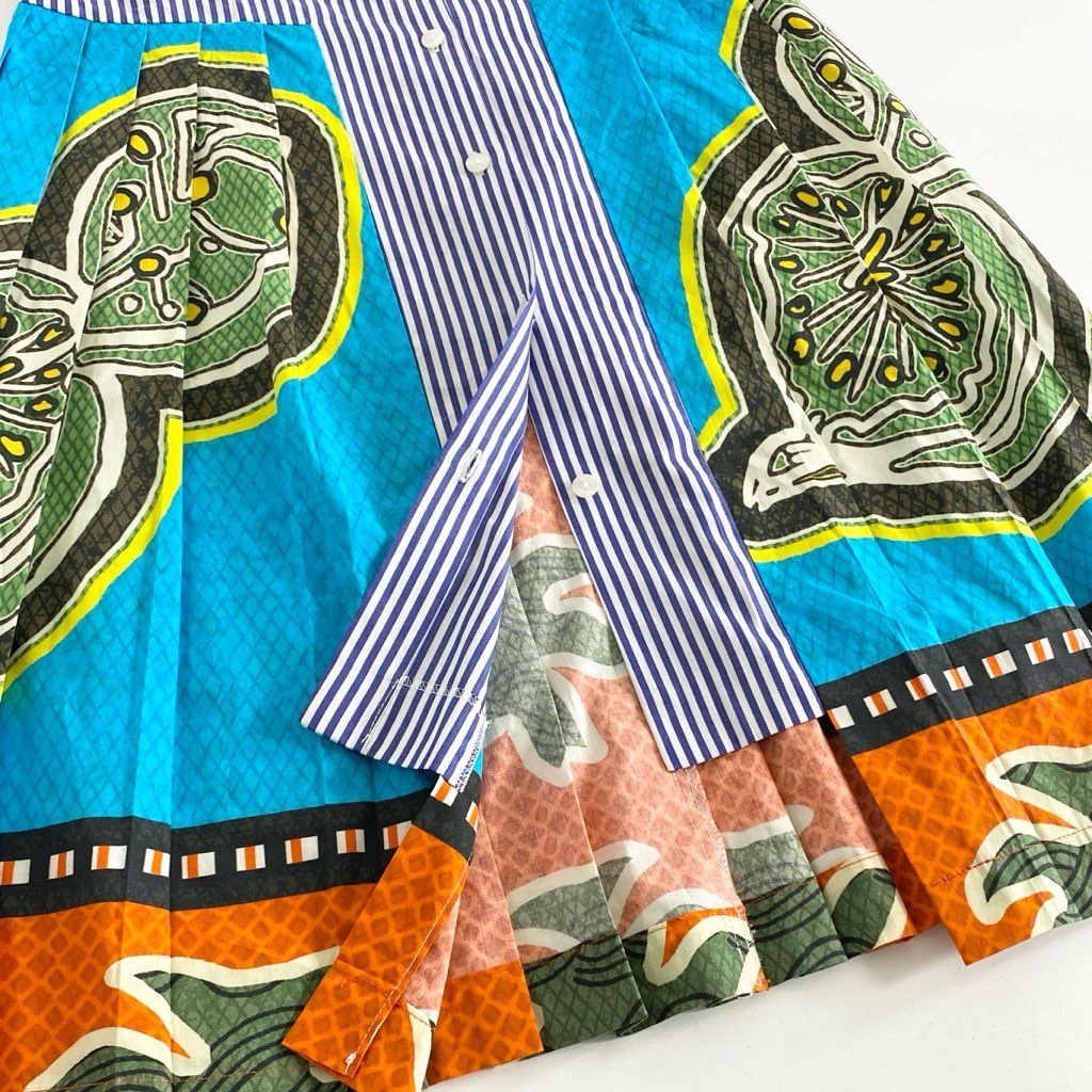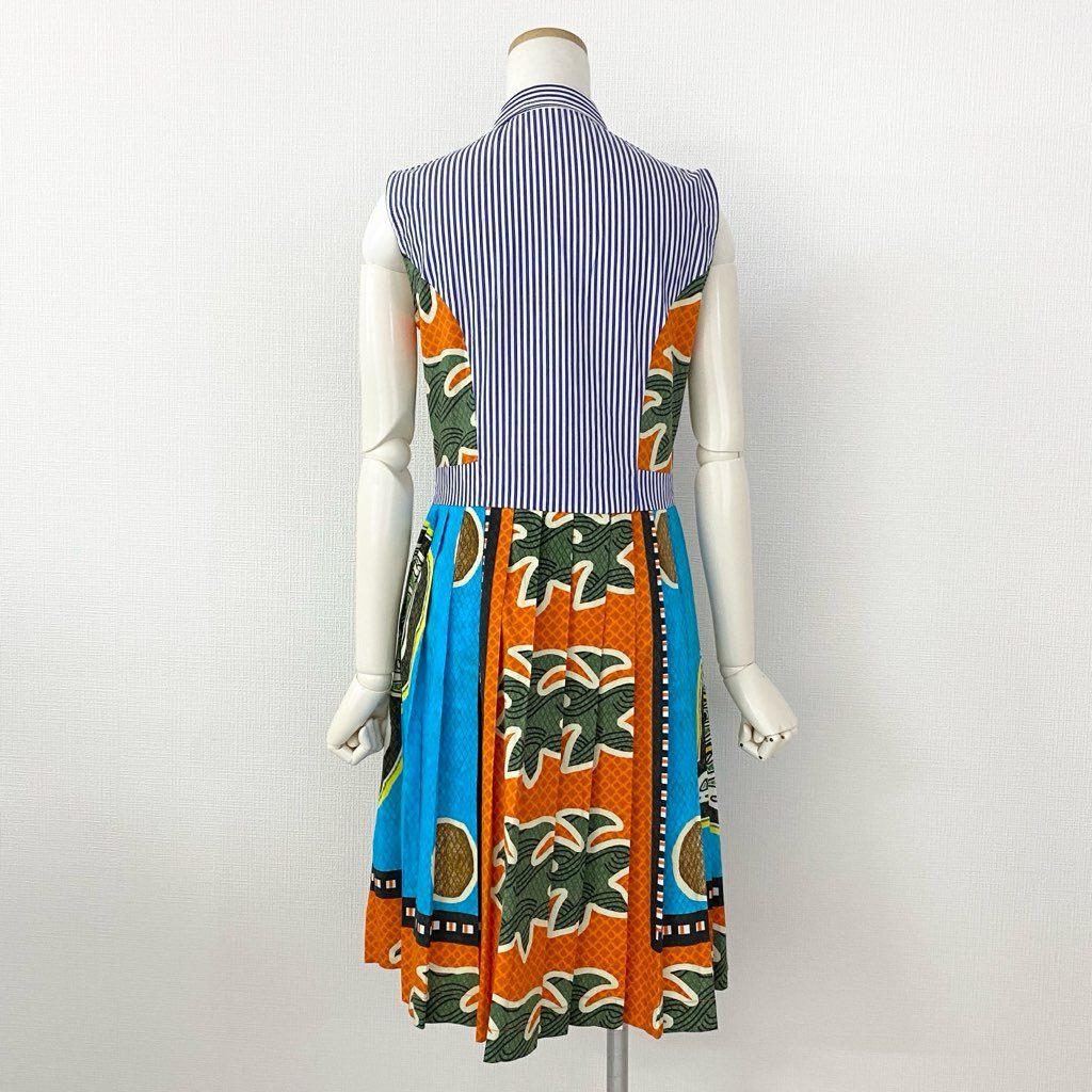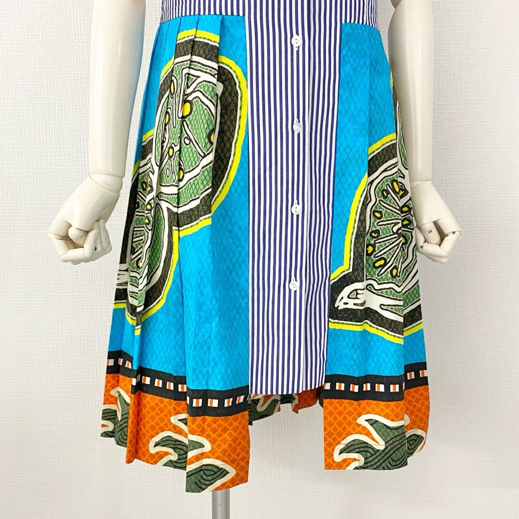 48f20 STELLA JEAN ステラジーン ノースリーブ フレアシャツワンピース プリーツ加工 ロングワンピース サイズ40 マルチカラー レディース 女性用