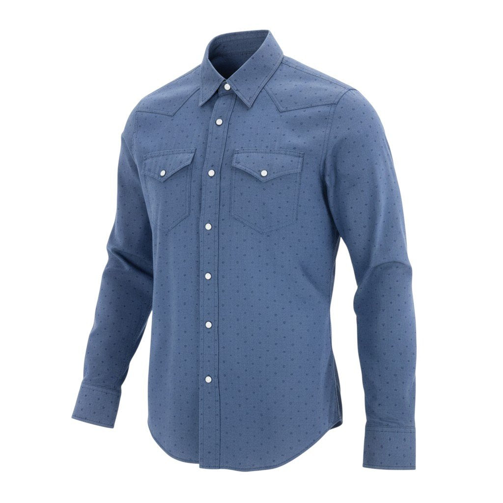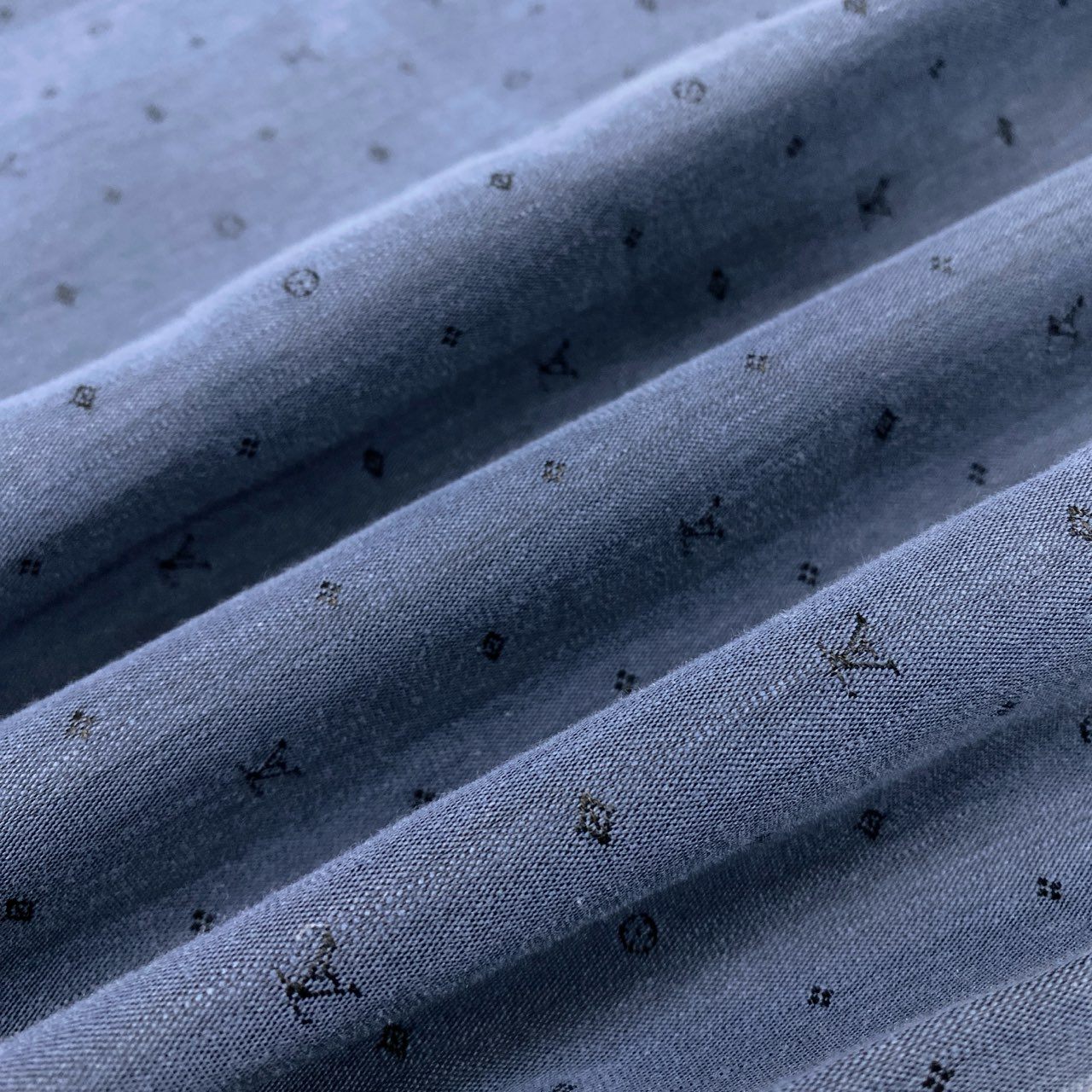 落ち着きのあるスモーキーブルーに細かなドット柄を配した、上品なウエスタンシャツです。 マットで柔らかなコットン系素材が心地よく、さりげない総柄が洗練された印象を演出。 フラップ付き胸ポケットとスナップボタン仕様が、ウエスタンディテールを際立たせます。 デニムやスラックスと合わせて、カジュアルからモードまで幅広く活躍するルイヴィトンらしい一着です。