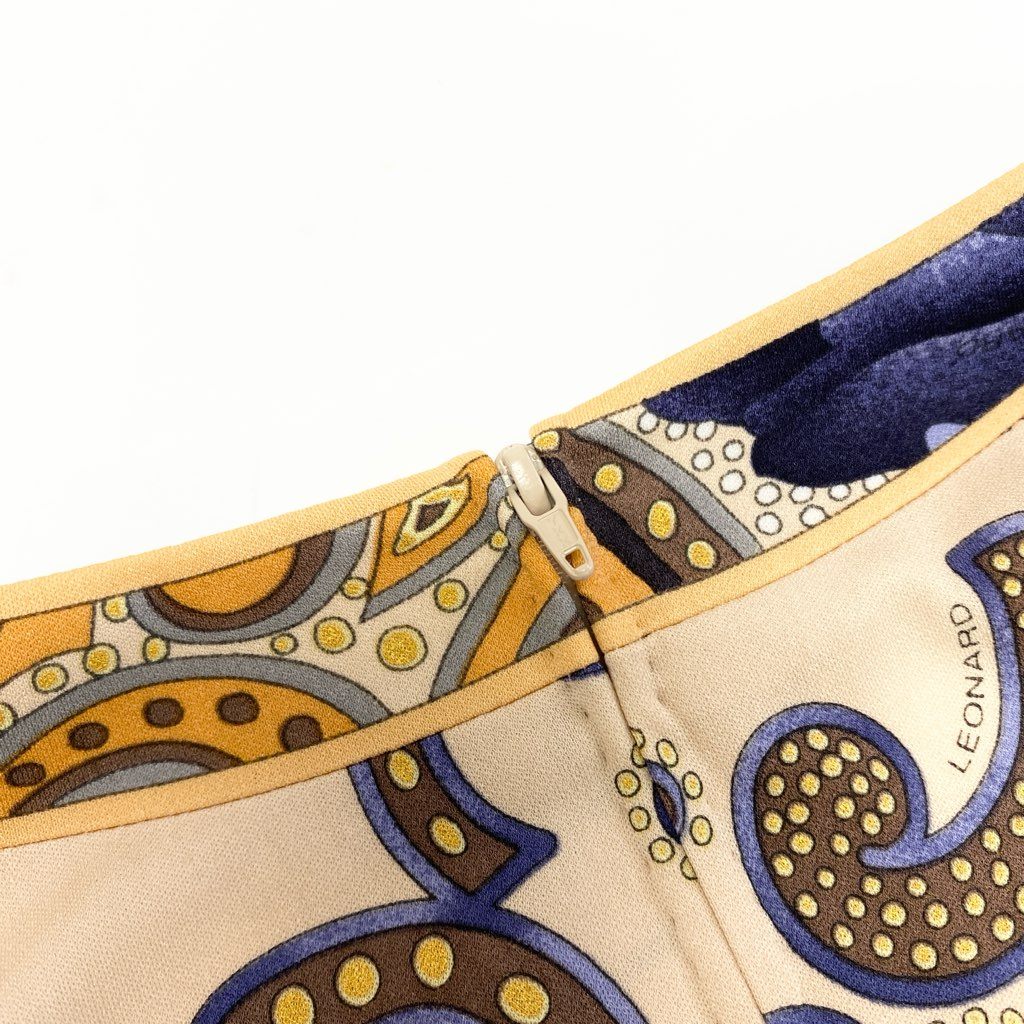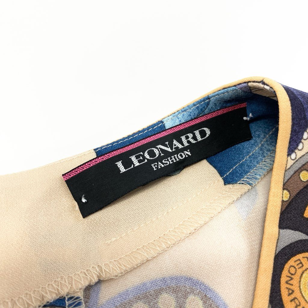 59L15 【美品】LEONARD レオナール チュニック ロングスリーブカットソー Vネック カンカン素材 総柄 トップス 40サイズ ベージュ系 レディースo07t