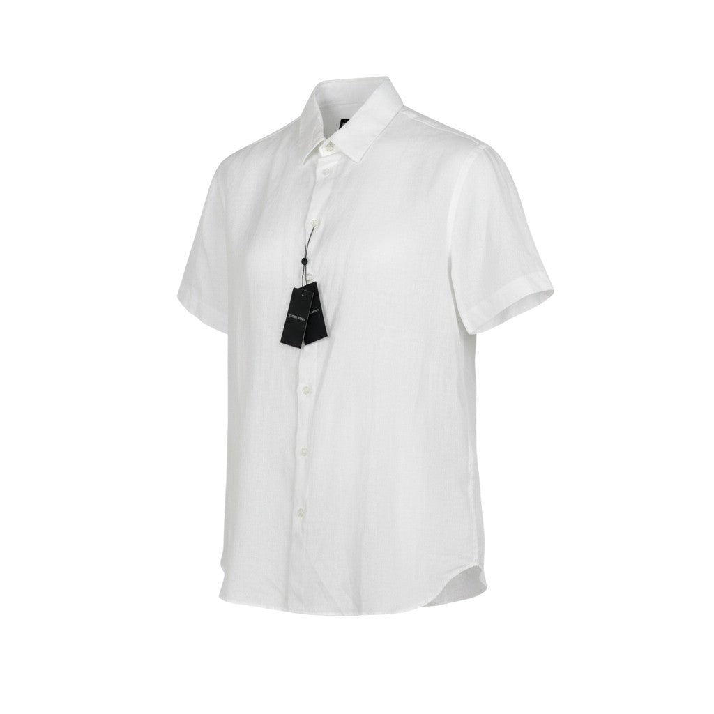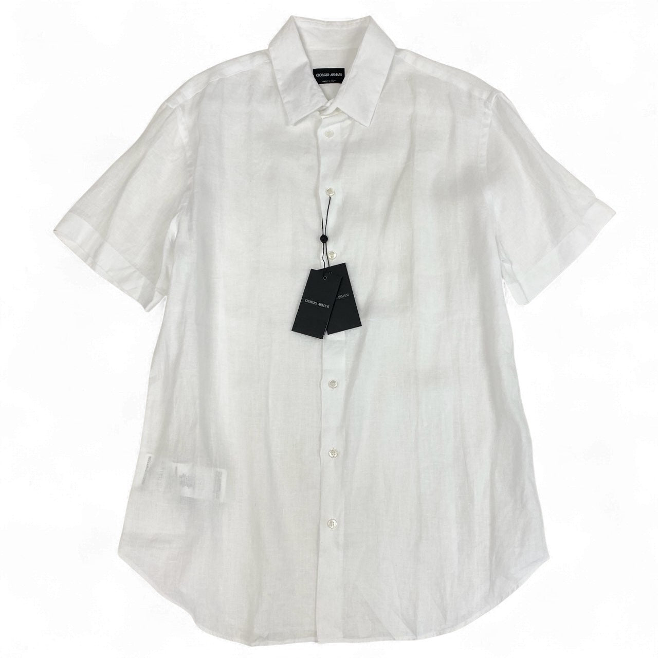 56k27 GIORGIO ARMANI ジョルジオアルマーニ 半袖シャツ リネンシャツ イタリア製 薄手 無地 42 16 1/2 ホワイト 麻100%o07t