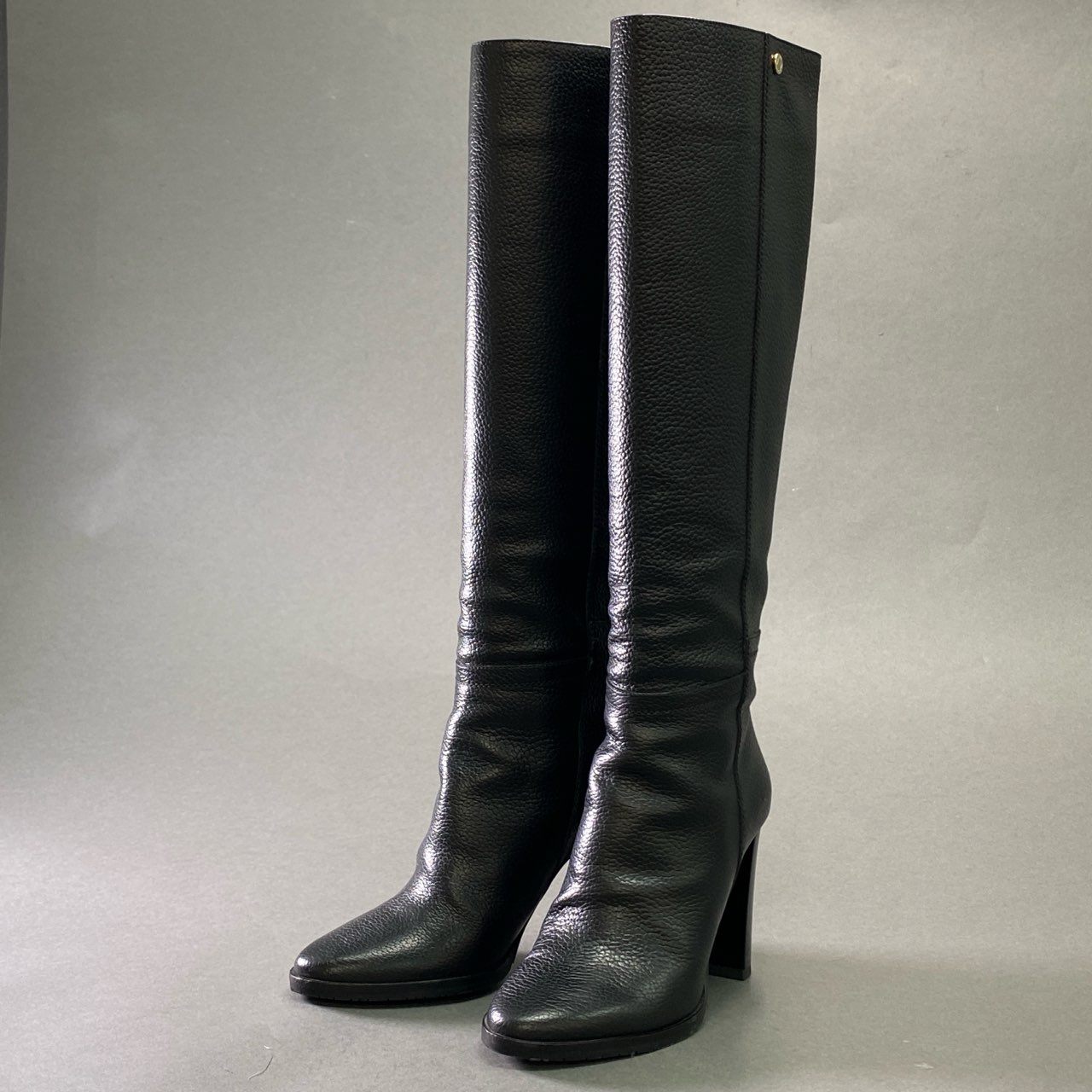 2f23 《美品》 JIMMY CHOO ジミーチュウ 本革 レザーロングブーツ 35 ブラック Leather シューズ イタリア製 女性靴