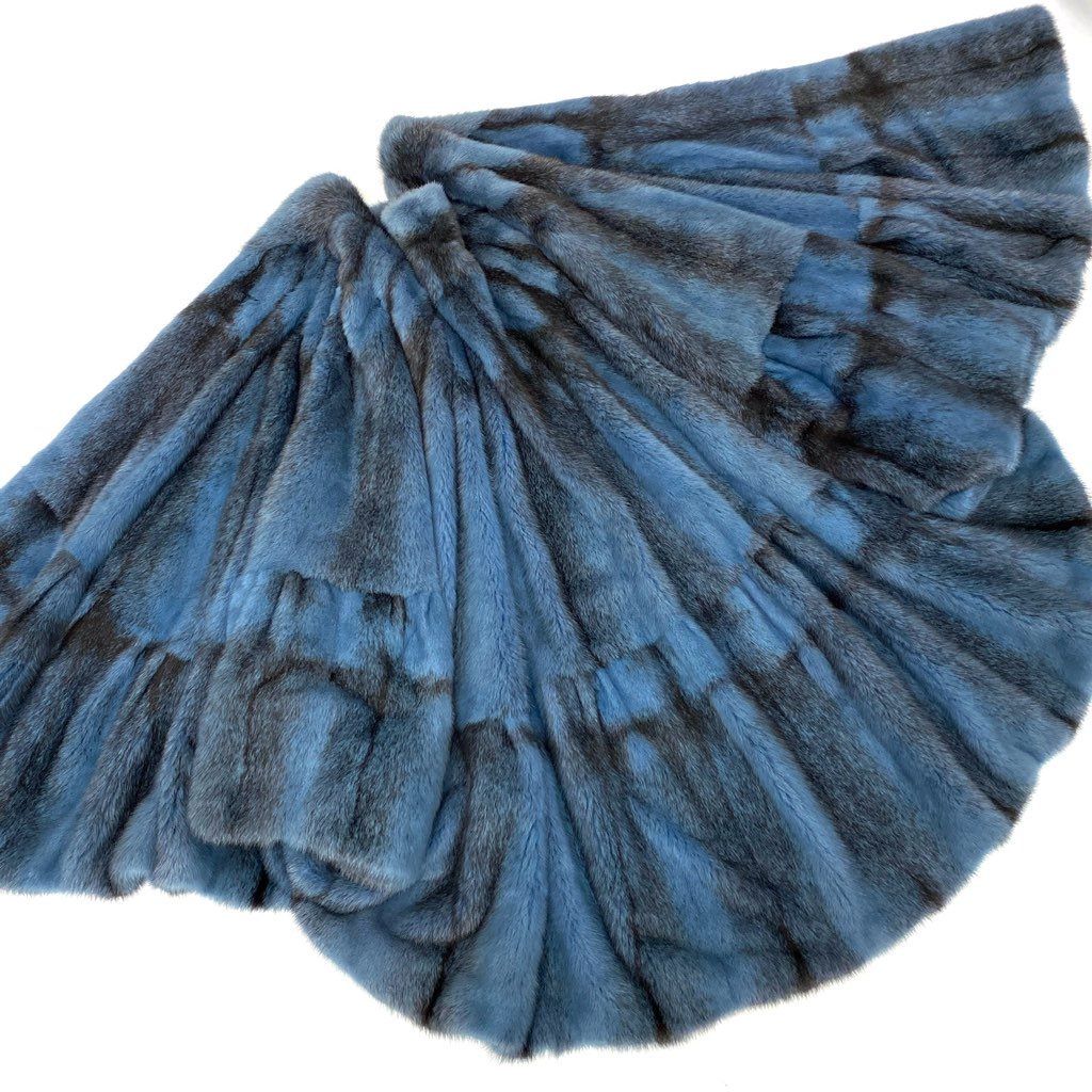29l27《超希少》 染め クロスミンク ポンチョ型 ロングコート サイズF ブルー ブラック 最高級本毛皮 MINK FUR 毛並み◎t18r