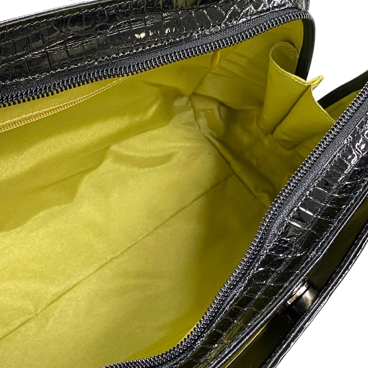 gk16《極美品》 sanpo サンポー JRA認定 シャイニングクロコ ハンドバッグ ブラック Crocodile Leather ワニ革 ワンショルダー センター取り エキゾチックt18r
