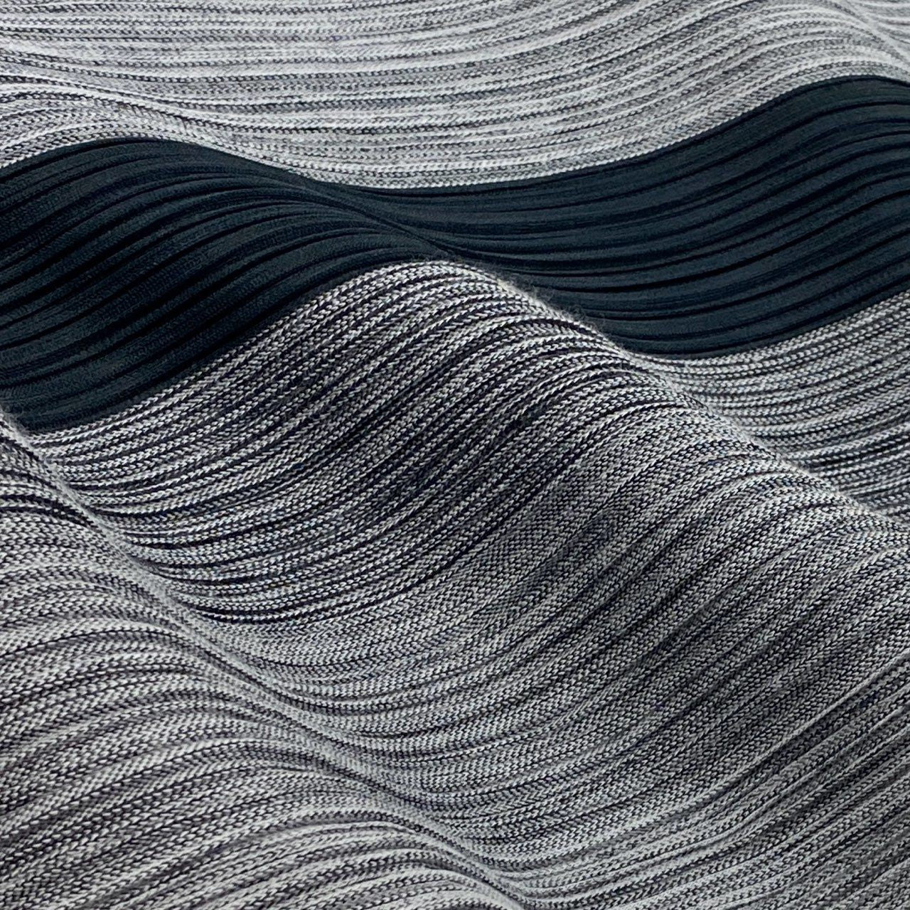 細かな横プリーツとネイビー×グレイッシュなストライプ切替が印象的な、PLEATS PLEASEのプリーツスカート。軽量でシワになりにくい素材のため、デイリーから旅行まで幅広く活躍します。プリーツ特有の伸縮性により体型を選ばず、美しいフレアシルエットをキープ。モノトーン系のコーディネートと相性が良く、季節を問わず使える万能アイテムです。