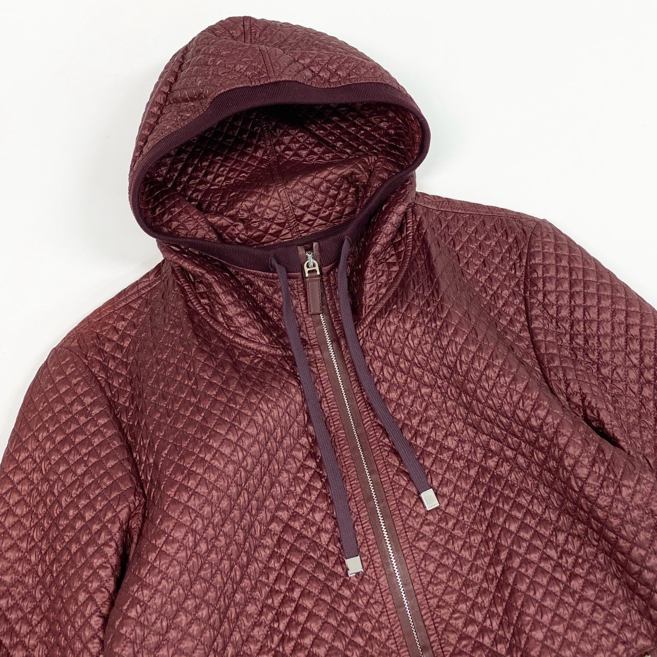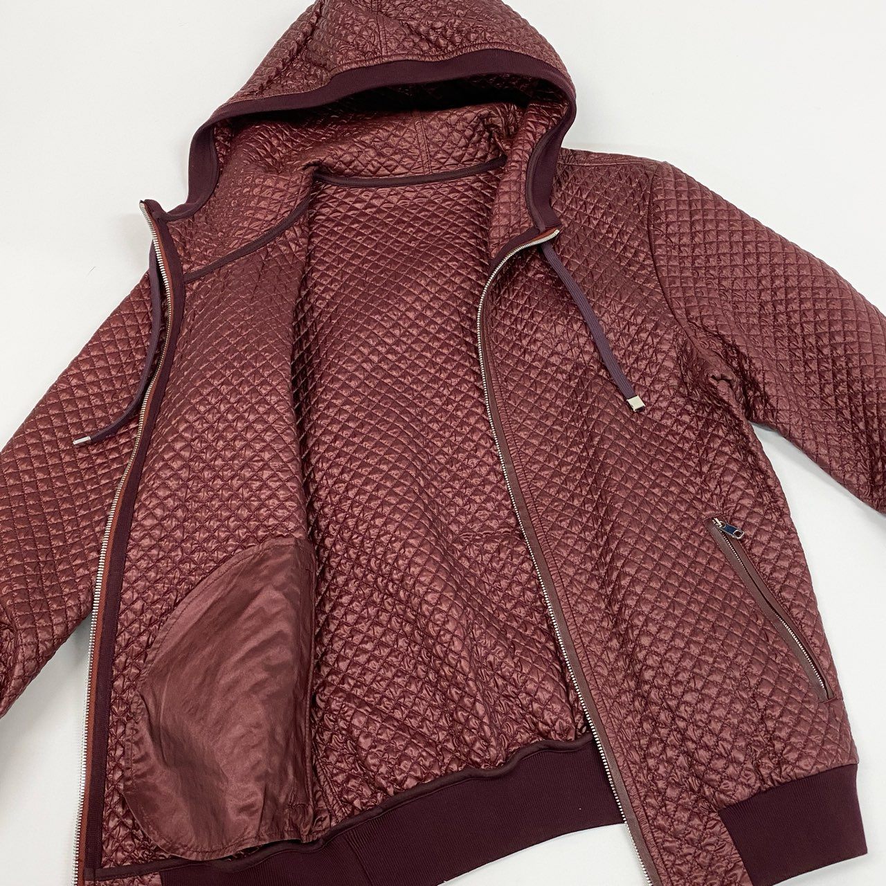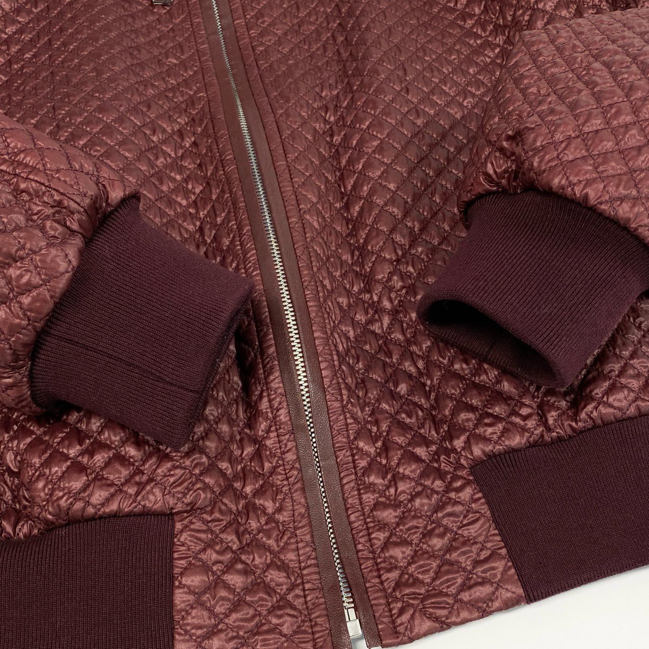 深みのあるボルドー(ワインレッド)カラーが印象的な、ドルチェ&ガッバーナのキルティングパーカーです。全体に施されたダイヤ型キルティング柄と、軽い光沢感のあるナイロン系素材がラグジュアリーな雰囲気を演出します。フード付きデザインに、メタルジップとリブ仕様の袖口・裾がスポーティなアクセント。カジュアルからモード寄りのスタイリングまで、主役アウターとして存在感のある一着です。