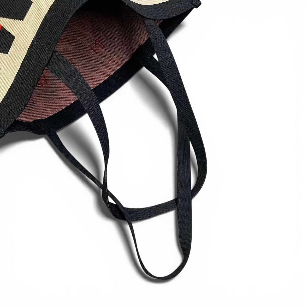 ベージュ×ブラックの千鳥格子柄が印象的なMARNIのトートバッグです。 ジャガード織りのしっかりとした素材感に、フロントのレッドロゴがアクセントになっています。 フラットでミニマルなフォルムながら、モード感のあるデザインがスタイリングを引き締めます。 ユニセックスで使いやすく、カジュアルからモードスタイルまで幅広く活躍するアイテムです。