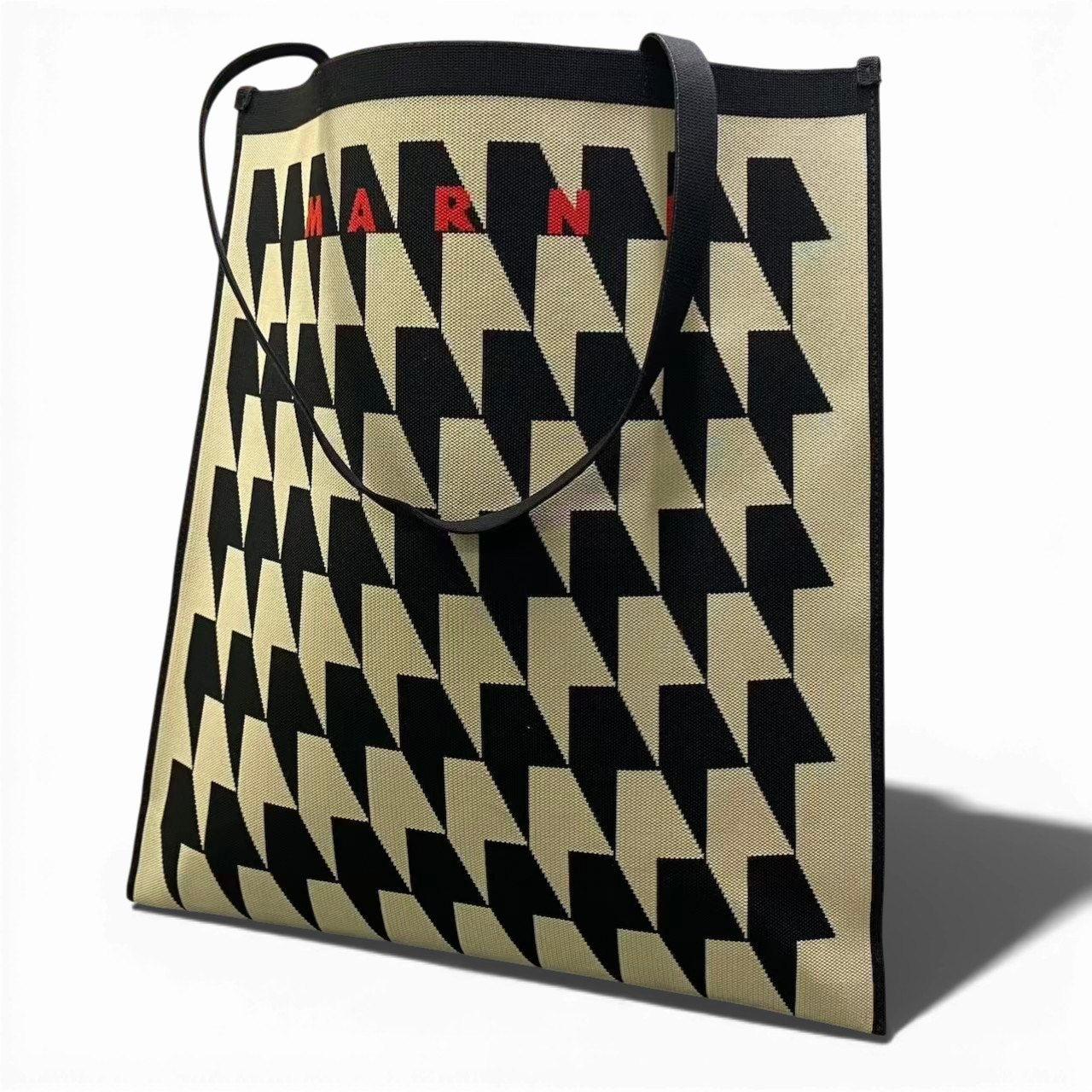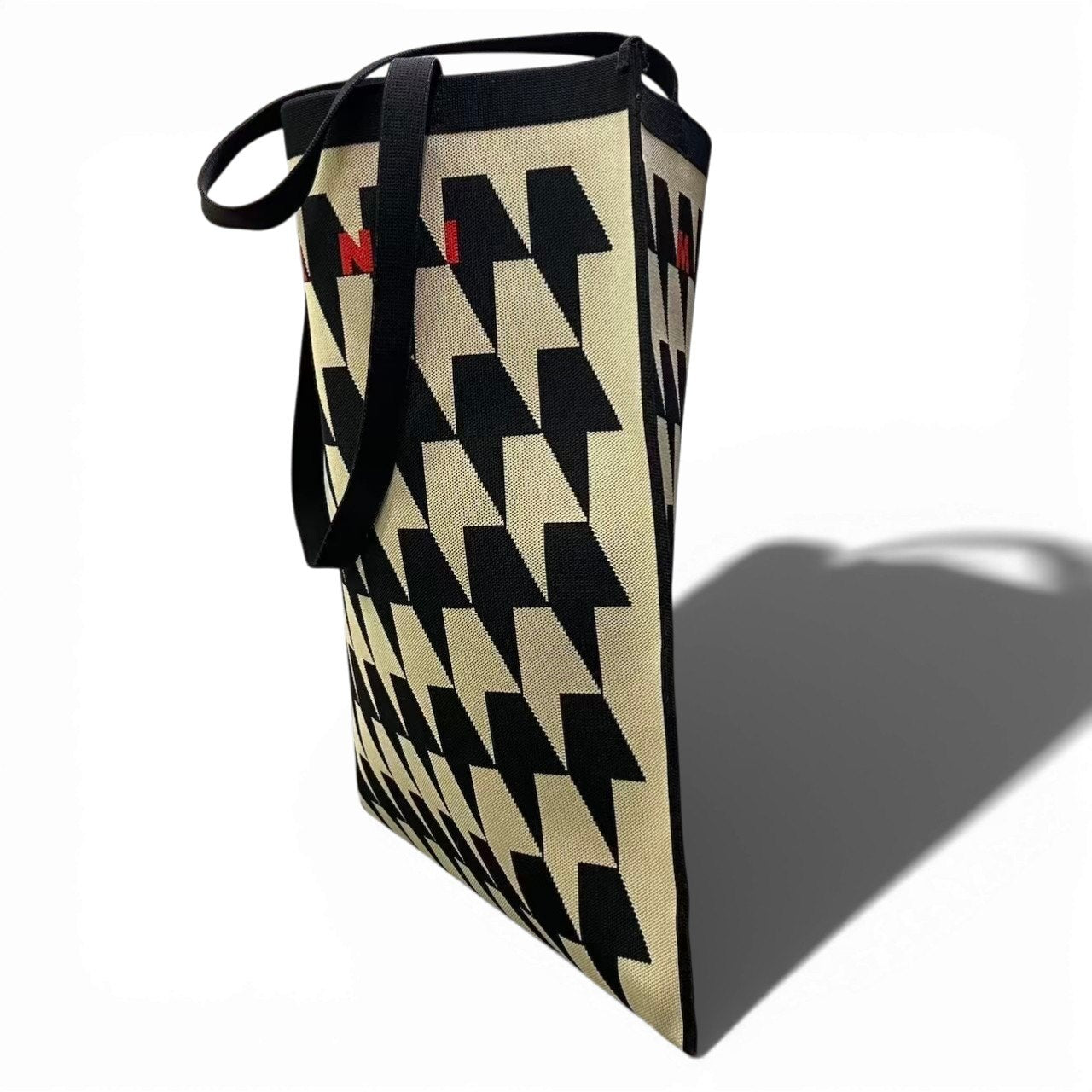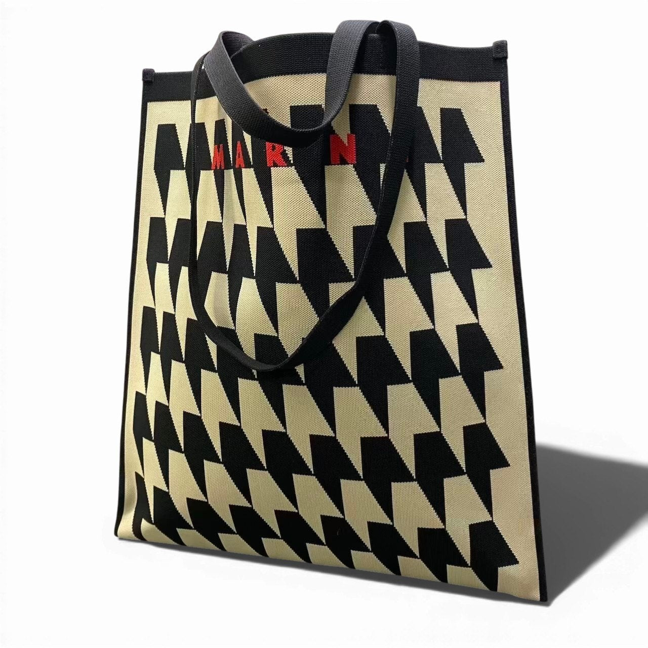 c23 MARNI マルニ 千鳥格子 ジャガード トートバッグ ブラック/ベージュ ユニセックス レディース メンズ バッグk02i