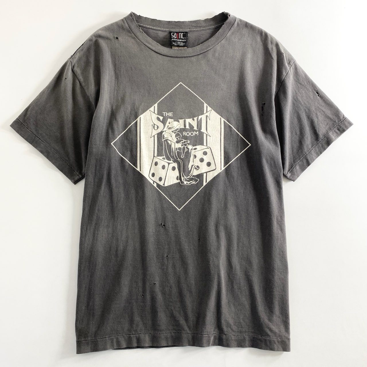 57e11 SAINT MICHAEL セントマイケル シャーマーアカデミー SA SS TEE SAINT ROOM ショートスリーブTシャツ カットソー 半袖 ヴィンテージ加工 SM-A22-0000-056 Lサイズ ブラック コットン