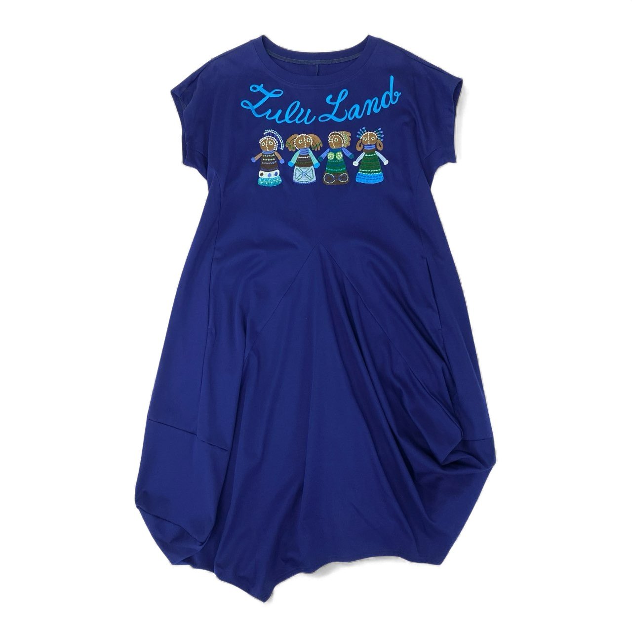 鮮やかな ディープロイヤルブルー に、胸元へ「Zulu Land」の刺繍ロゴとカラフルな民族調モチーフが施された、トクコプルミエヴェルらしいアート性のある半袖バルーンワンピースです。ストレッチ性のある滑らかな生地で、ドレープが美しく広がる立体的なバルーンシルエットが魅力。身幅がゆったりしており、体型を選ばずリラックスして着用できます。1枚で主役になる華やかなデザインで、お出かけ・旅行・日常のワンポイントスタイルに最適な一着です。