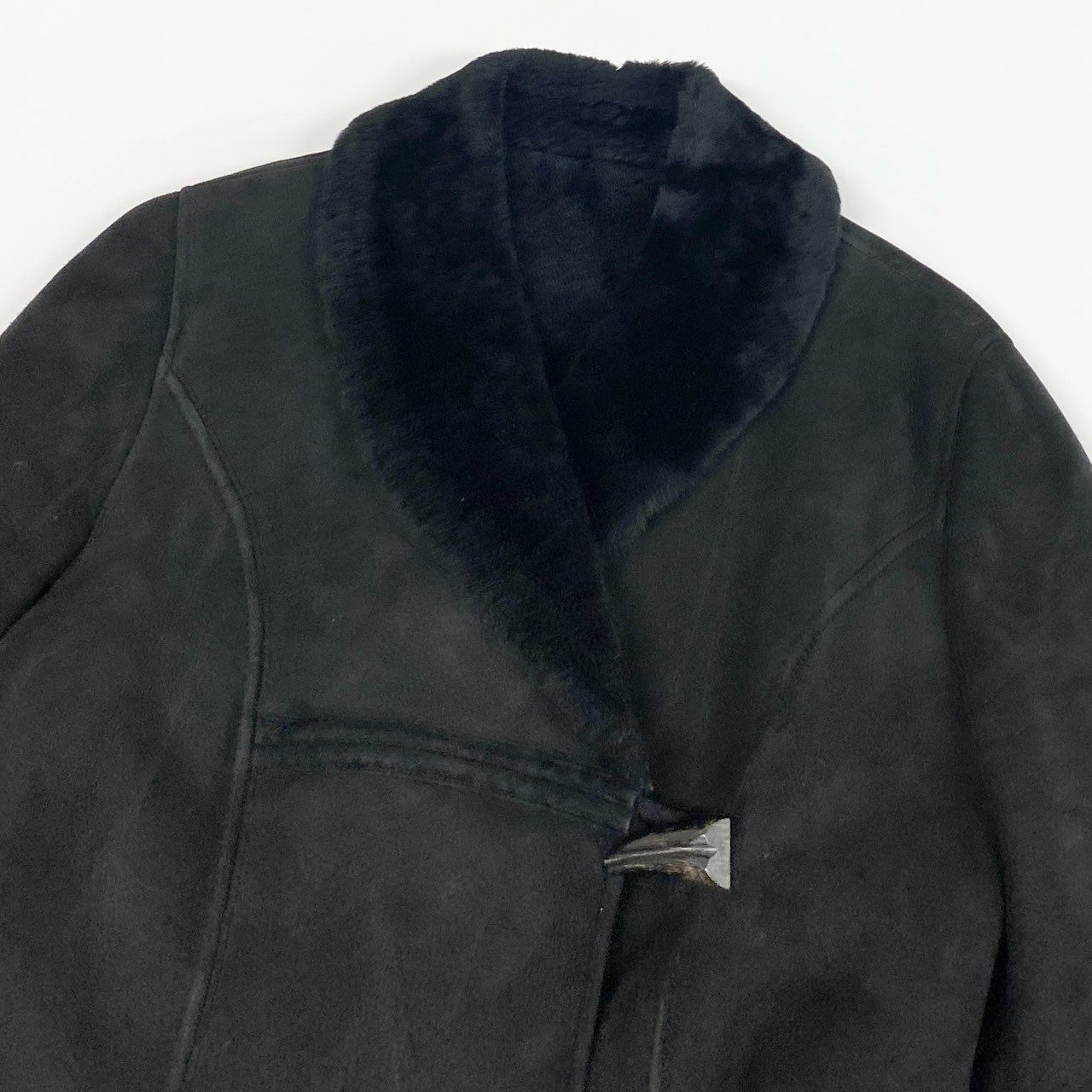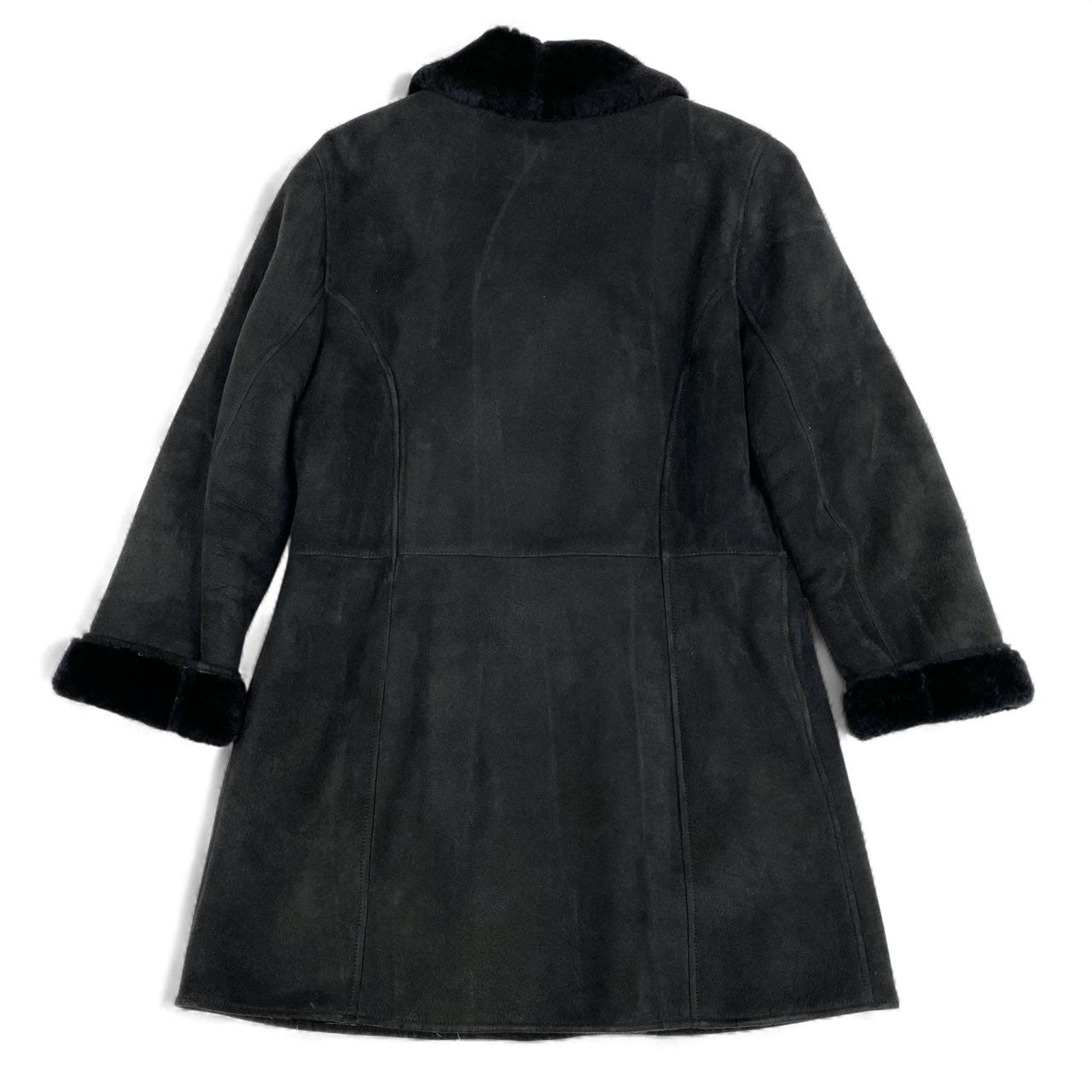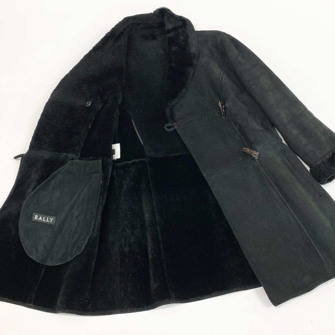 60L16 BALLY バリー ムートンコート レザーコート ダブル トグルボタン 42 ブラック リアルムートン レディース イタリア製u02t