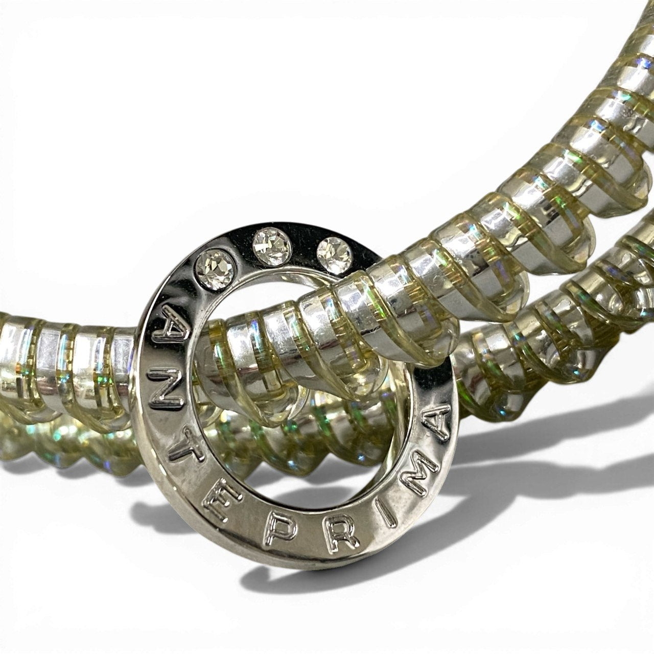 淡いライトゴールド系のワイヤー素材が華やかに輝くANTEPRIMAのハンドバッグです。細かなビーズ状のワイヤー編み込みデザインが特徴で、光を受けて上品に煌めきます。コンパクトながら必要な小物をしっかり収納でき、軽やかな持ち心地も魅力です。パーティーやフォーマルシーンはもちろん、コーディネートのアクセントとしても活躍するエレガントな一品です。