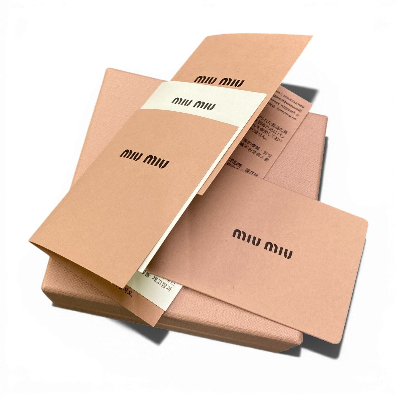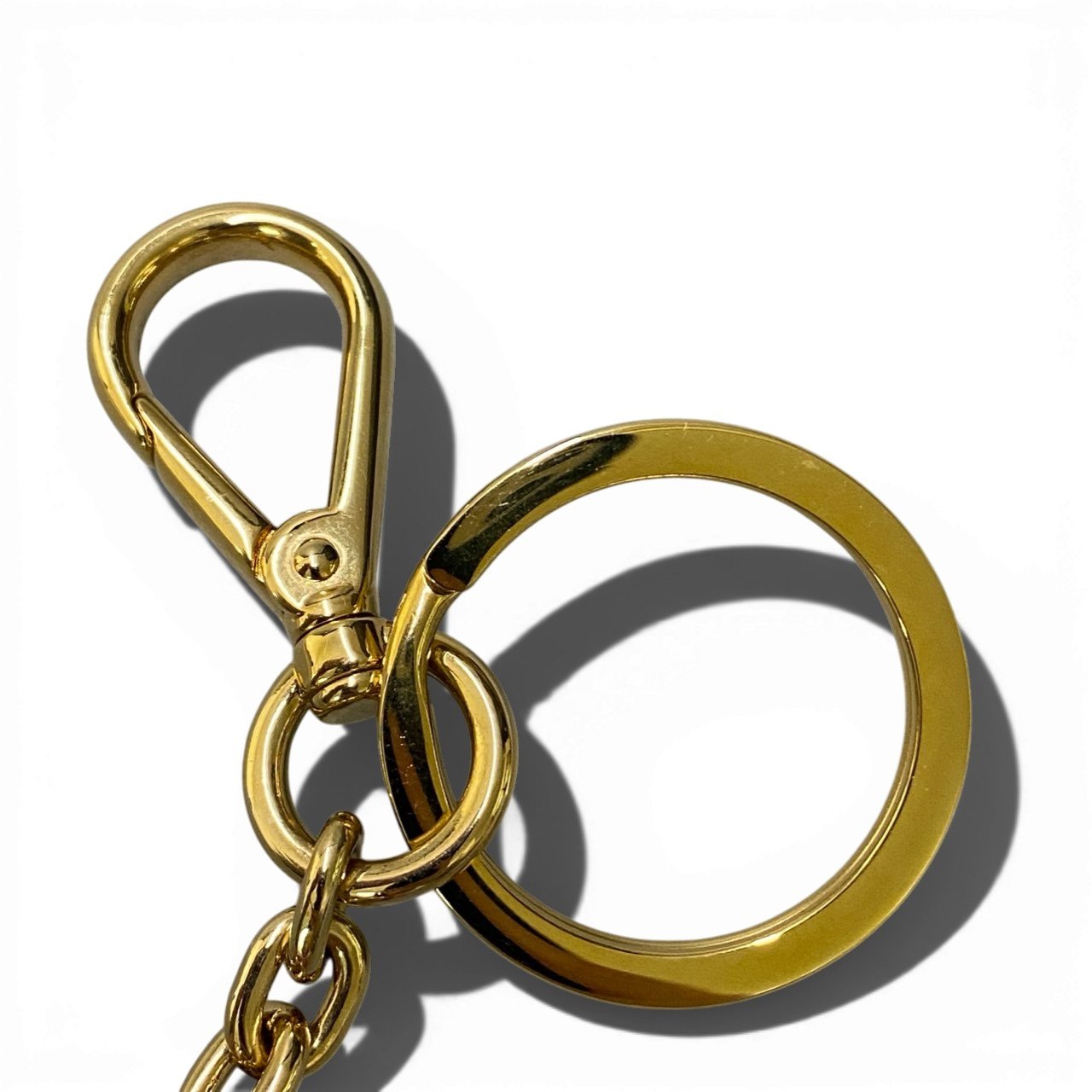 くすみのあるダスティピンクの立体「miu miu」ロゴが印象的なキーリングです。 マットな質感のロゴチャームに、光沢のあるゴールドチェーンが高級感をプラスしています。 ブランドアイコンを大胆にあしらったデザインで、シンプルなバッグにも映える存在感。 キーリングとしてはもちろん、バッグチャームとしてコーディネートのワンポイントになるアイテムです。