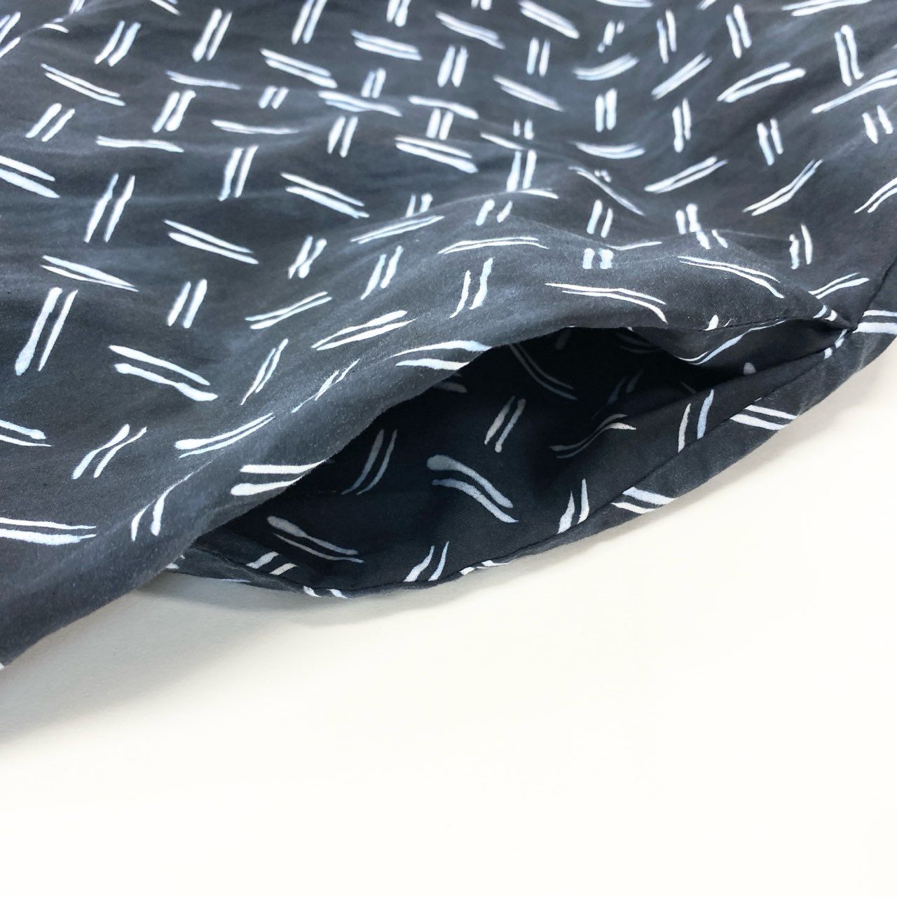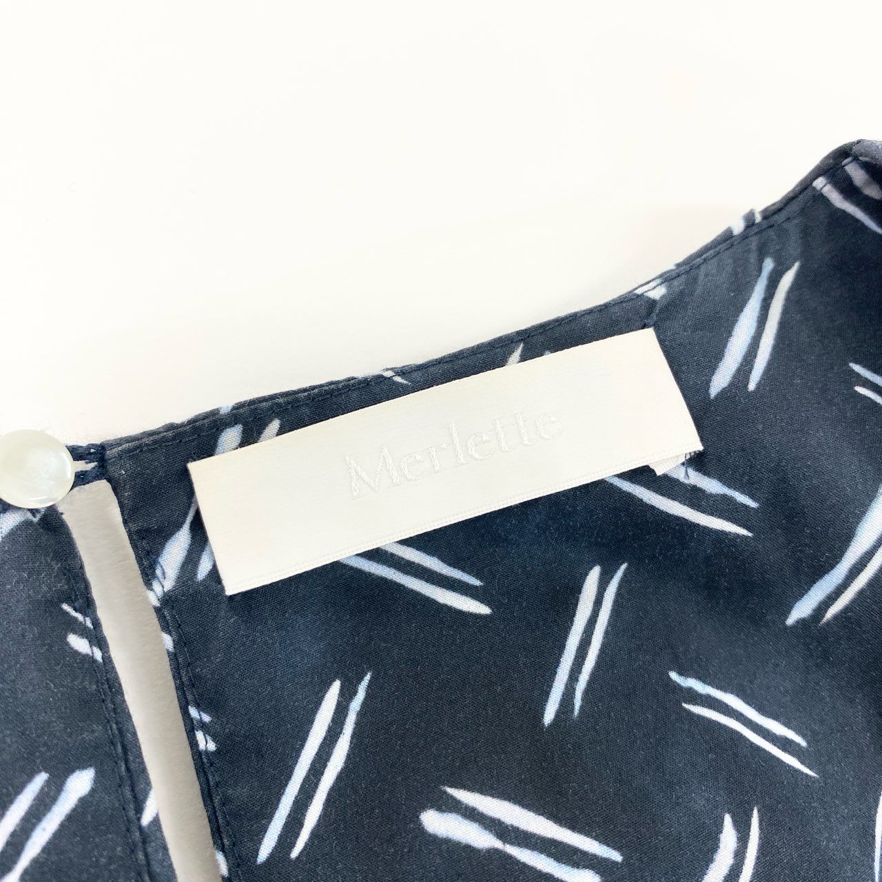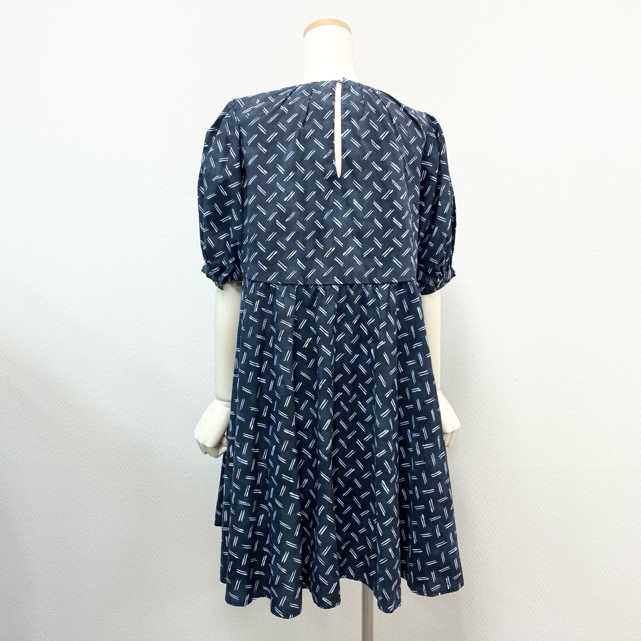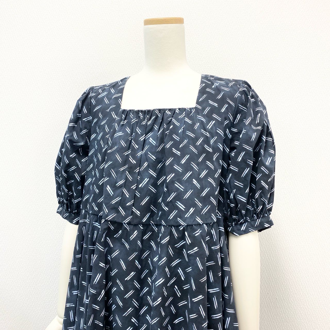 18j17 Merlette マーレット スクエアネック チュニックワンピース フレアワンピース 総柄プリント パフスリーブ 五分袖 XS ネイビー コットンu02t