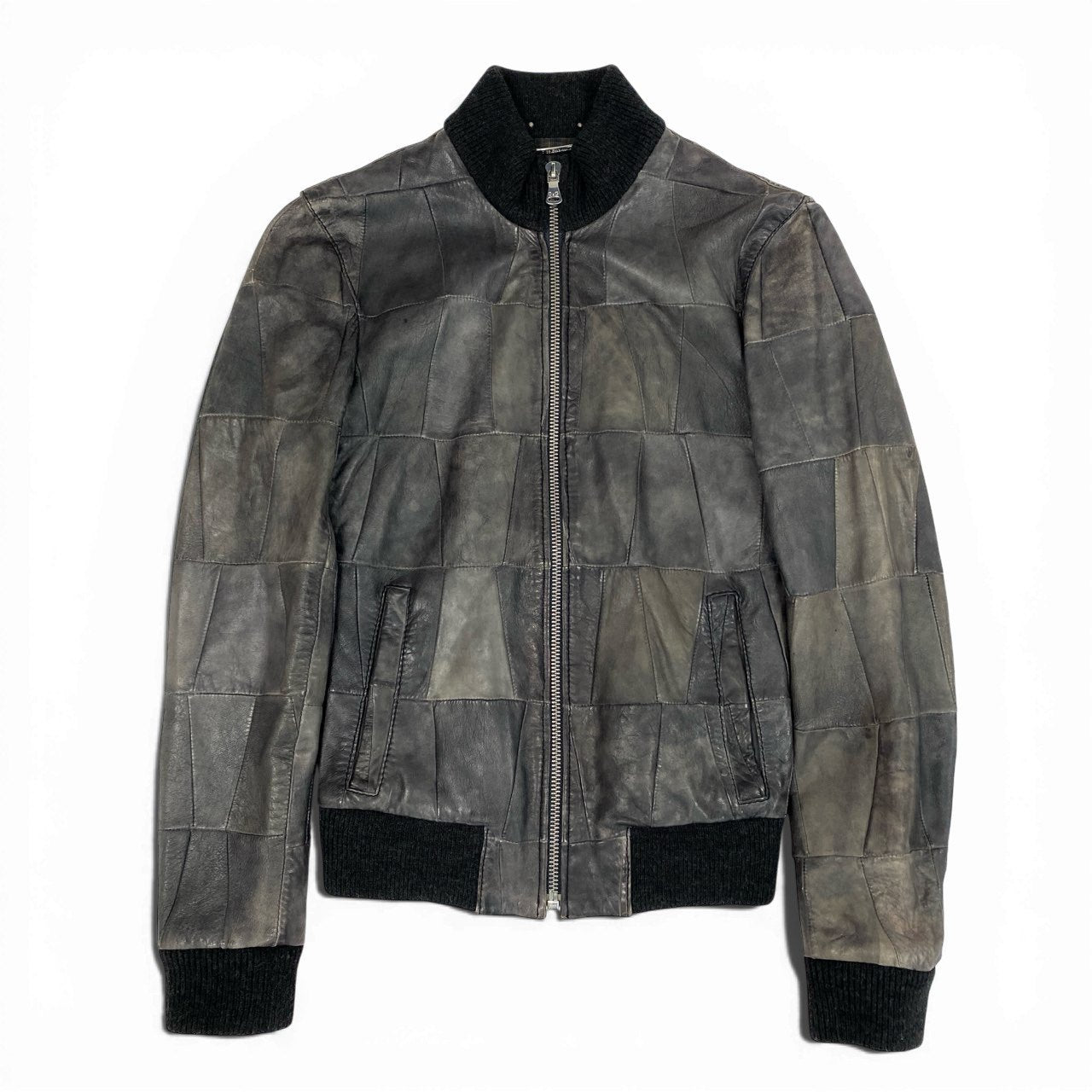 37a19 DOLCE&GABANA D&G ドルチェ&ガッバーナ パッチワーク レザージャケット 2000’S サイズ44 グレー系 メンズ アウターk02i