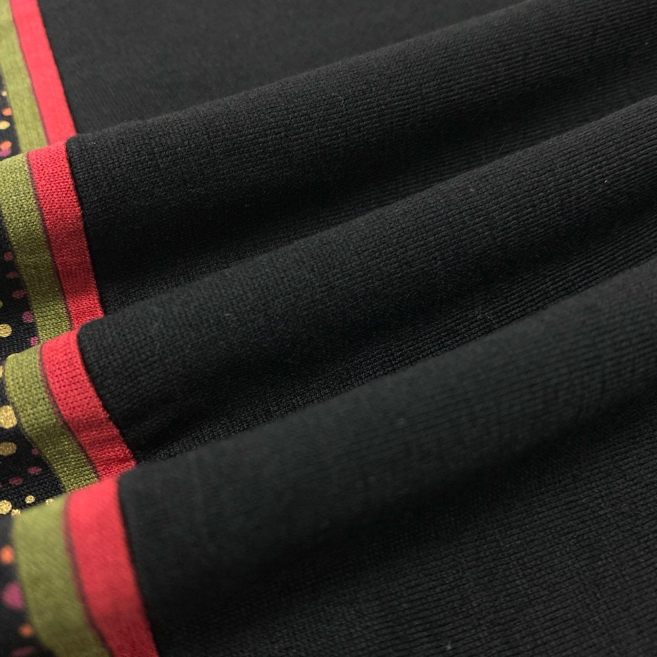 79k21 LEONARD FASHION レオナール 長袖Tシャツ クルーネック カットソー 切替プリント ウールシルク レディース 女性用 M ブラックu02t