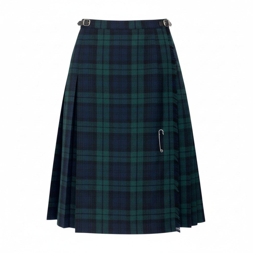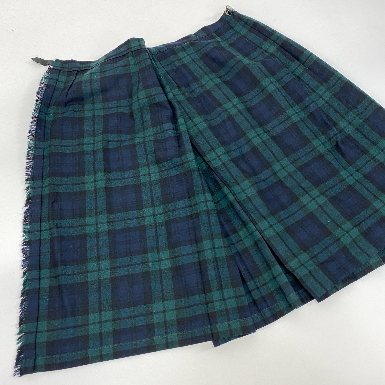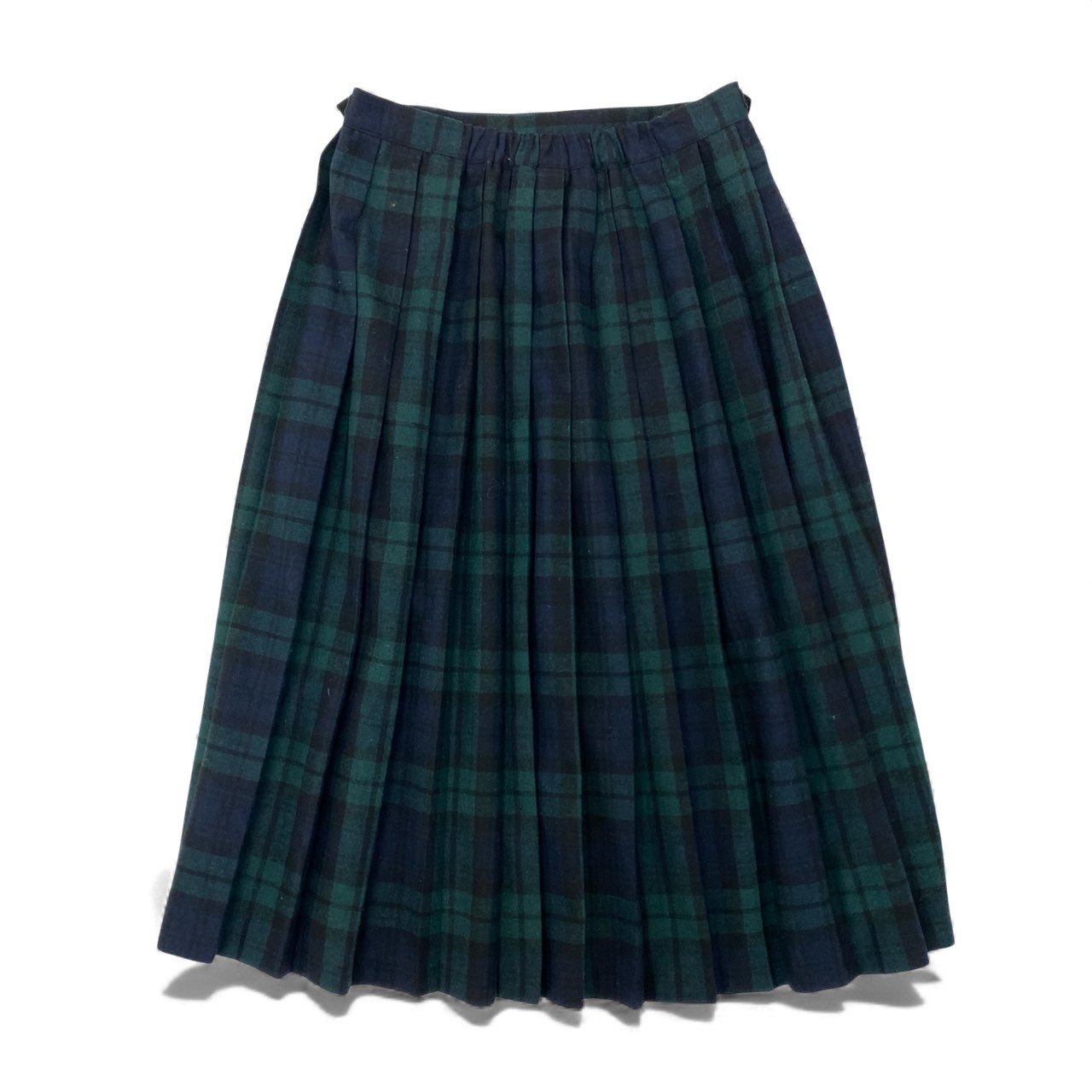 オニールオブダブリンらしい、深いグリーンとネイビーのチェックが魅力の巻きスカートです。 上質なウールフランネルの柔らかさに、伝統的なプリーツとクラシックなシルバーピンがアクセントに。 ウエストバックルで細かな調整ができ、季節に応じてニットやシャツとも相性抜群です。 ミディ丈の上品なシルエットは、トラッドなスタイルからカジュアルまで幅広く活躍。 永く愛用できる定番トラッドスカートをお探しの方にぴったりの一枚です。