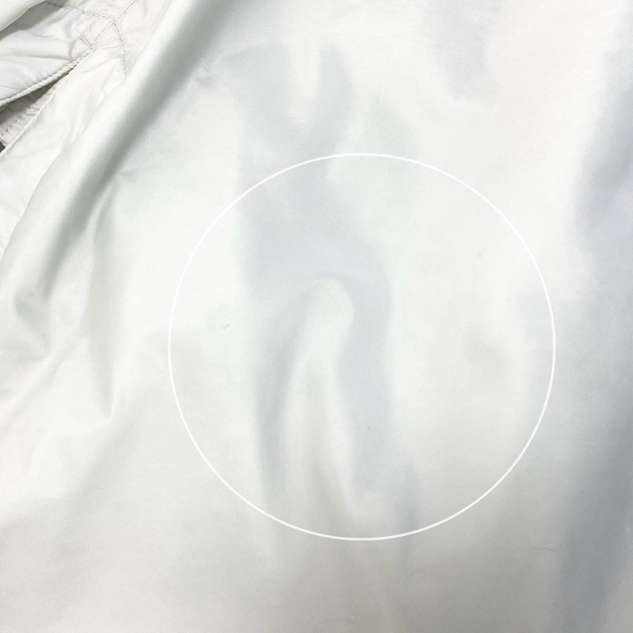 リックオウエンス ダークシャドウラインらしいミニマルかつモード感の強いモッズコートです。オフホワイトカラーの光沢感あるナイロン素材を使用し、無地ながら立体的で存在感のある仕上がりになっています。フード付きデザインにウエスト・裾のドローコード、フラップポケットを備え、機能性とデザイン性を両立。ストリートからモードスタイルまで幅広く合わせやすく、主役アウターとして活躍する一着です。