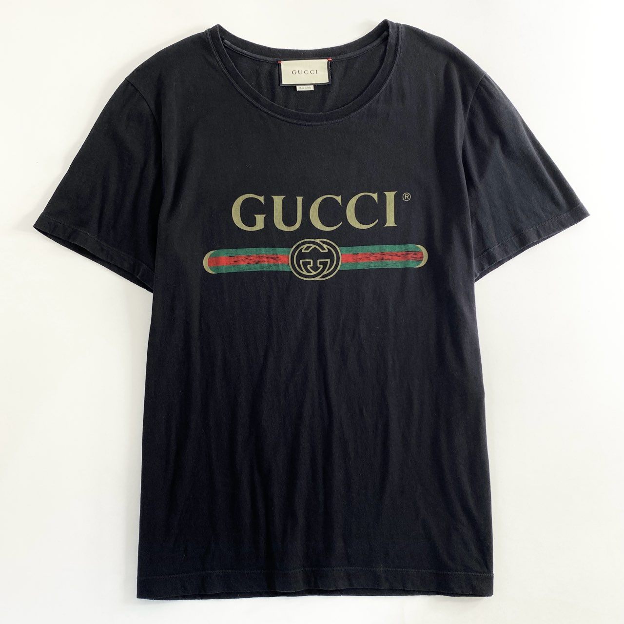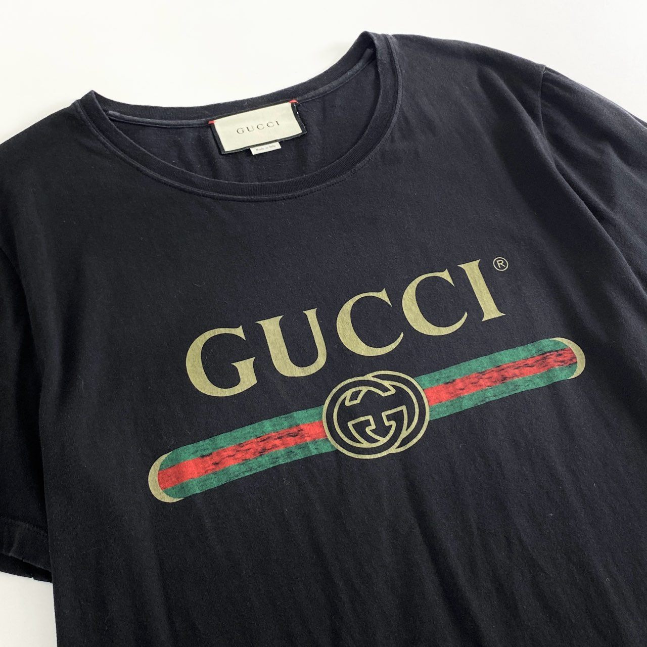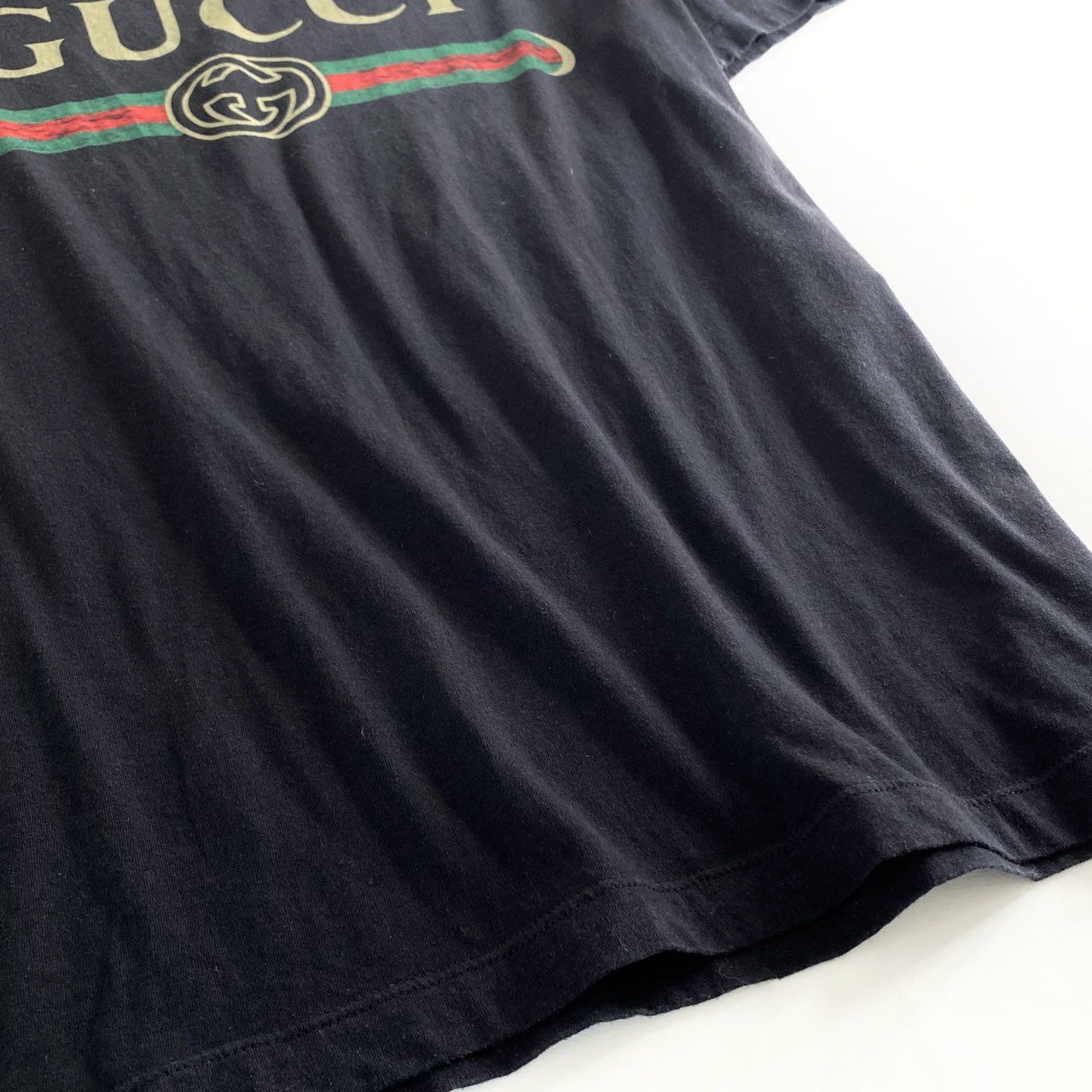 60e11 GUCCI グッチ イタリア製 ロゴ ウォッシュ オーバーサイズ ヴィンテージロゴ Tシャツ カットソー プリント 440103 Mサイズ ブラック コットン