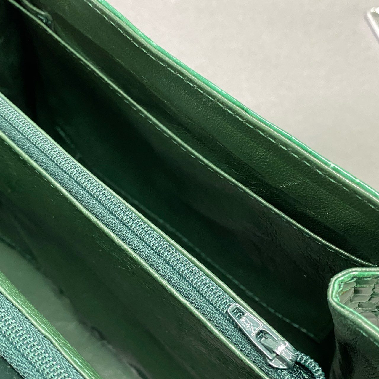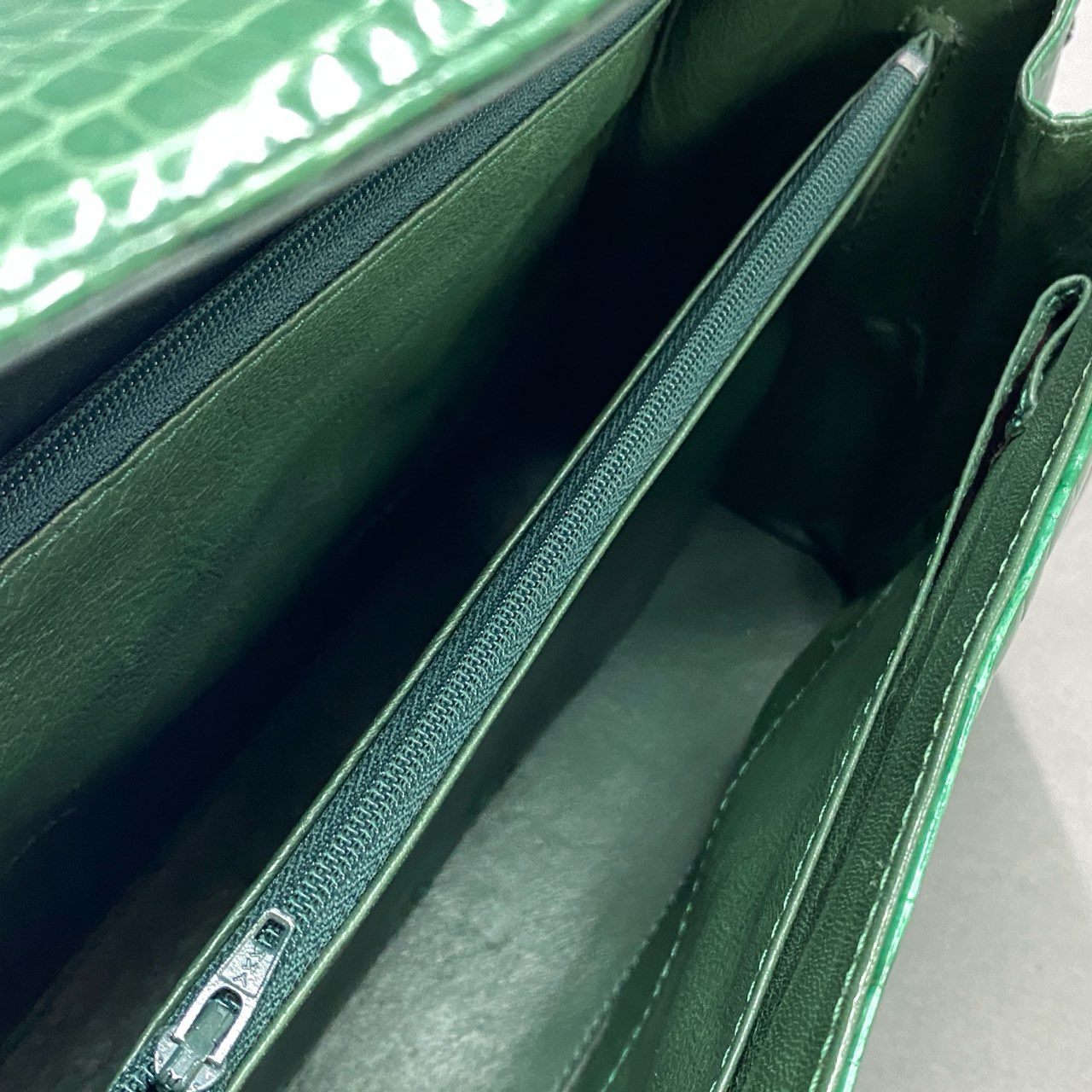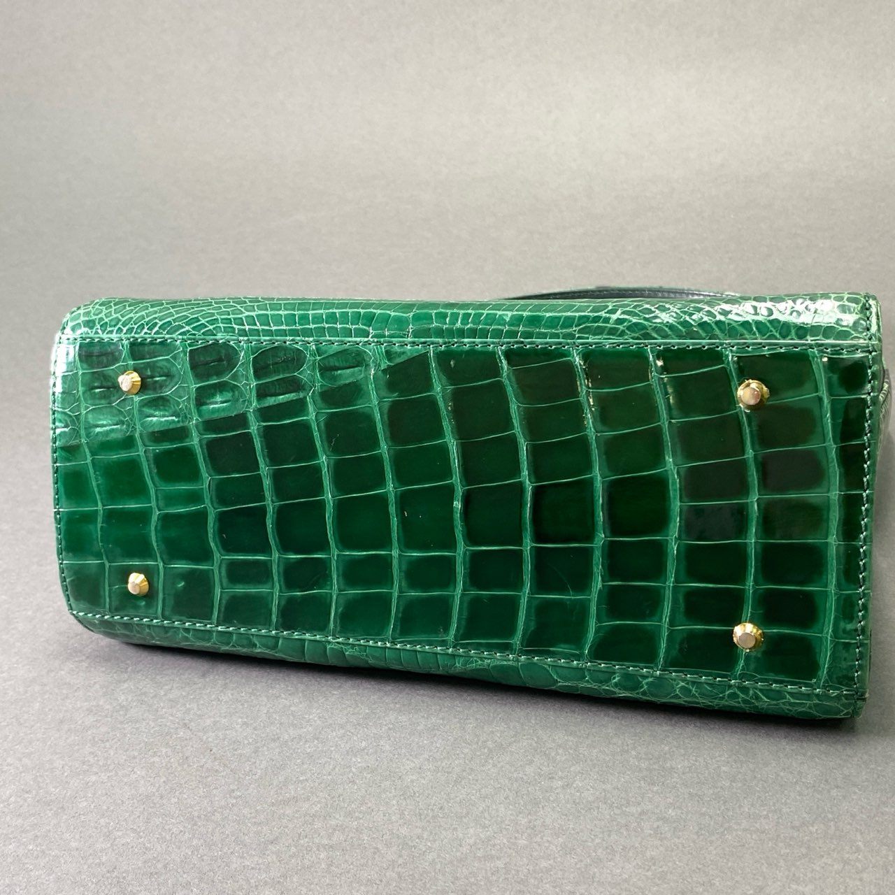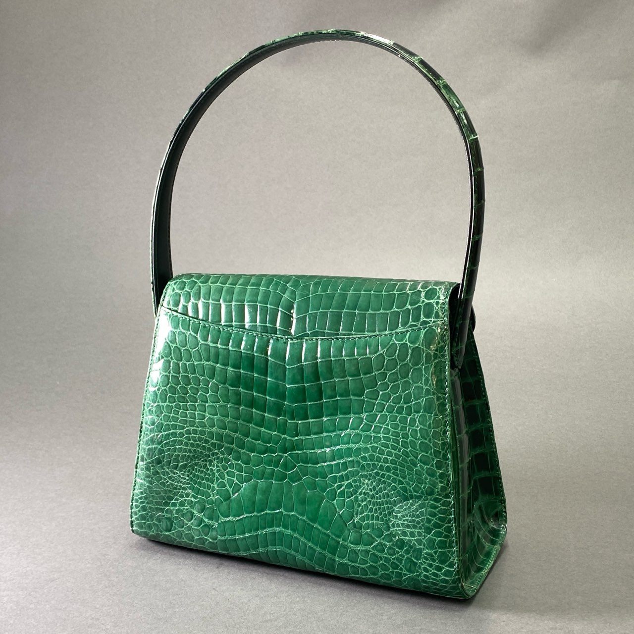 De18 本革 クロコダイルレザー センター取り ハンドバッグ ワンショルダーバッグ フラップ ワンハンドル グリーン シャイニングクロコダイル レディース 女性用 鞄