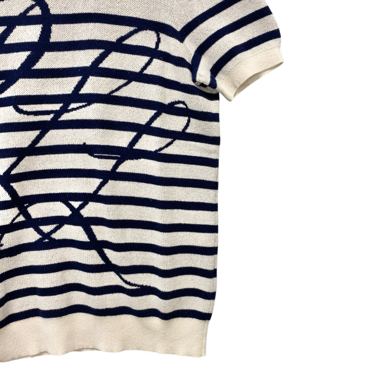 5c6 LAUREN RALPH LAUREN ローレンラルフローレン 半袖ニット サマーセーター 近年 M ホワイト ネイビー コットン レディースu02t