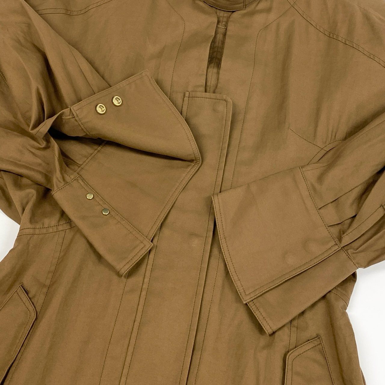 身幅にはゆとりがあり、ウエスト切替による程よくシェイプされたシルエットで、全体はタイトすぎません。