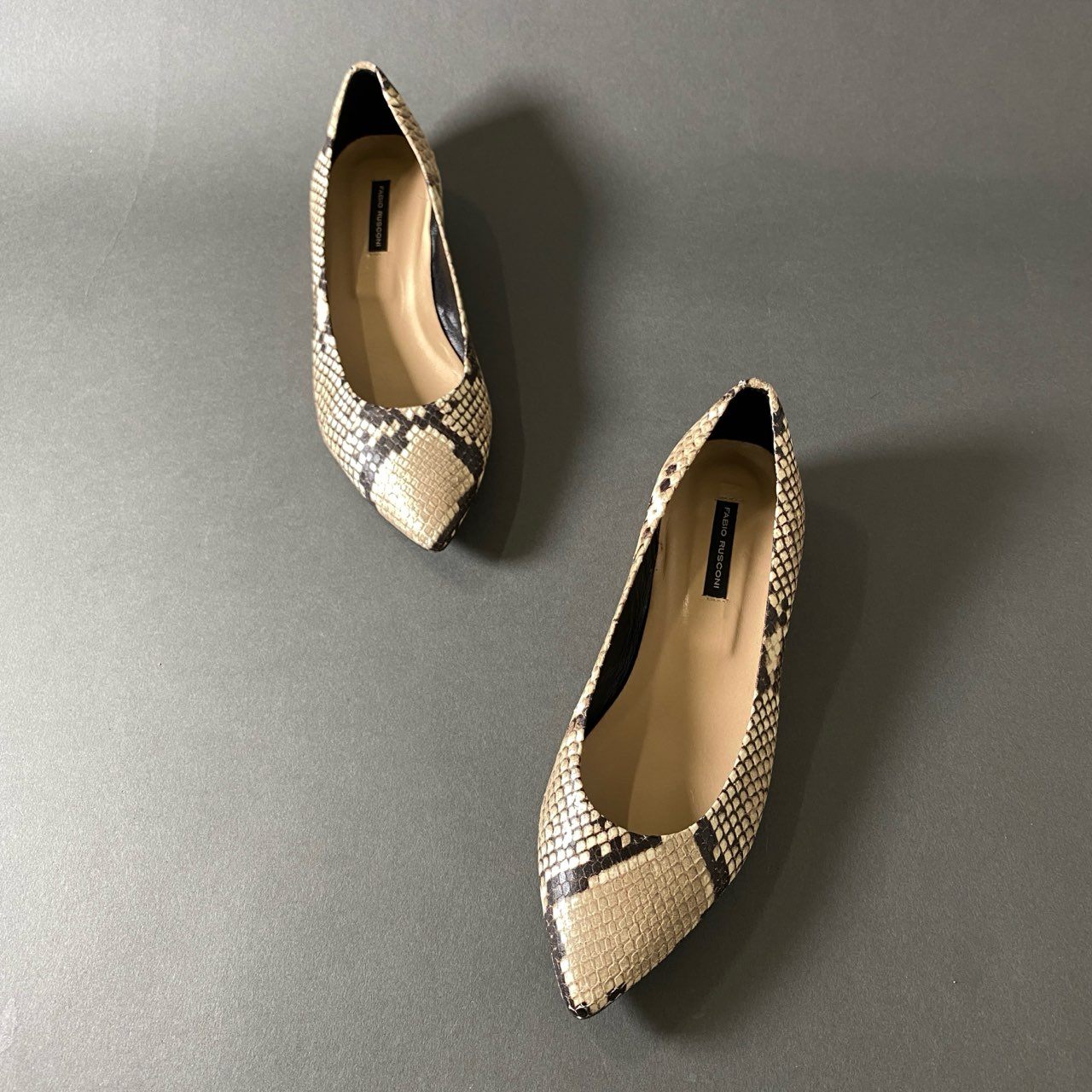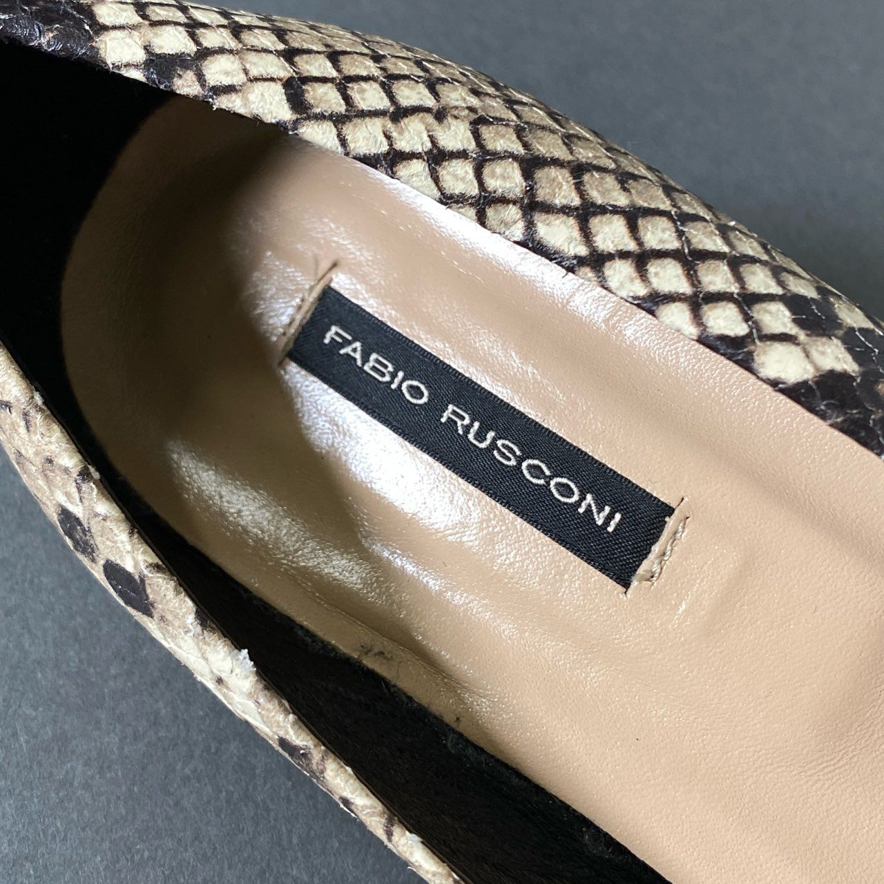 3g28 FABIO RUSCONI ファビオルスコーニ パイソン風 ポインテッド フラットシューズ パンプス サイズ37 ベージュ系 レザー レディース 女性用 靴