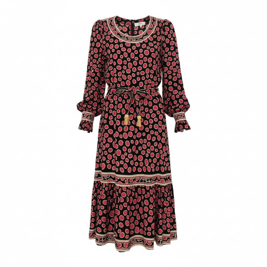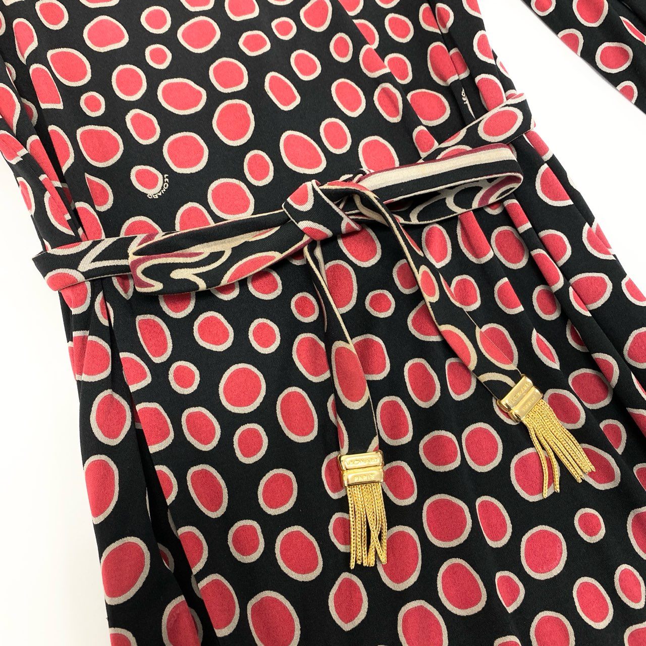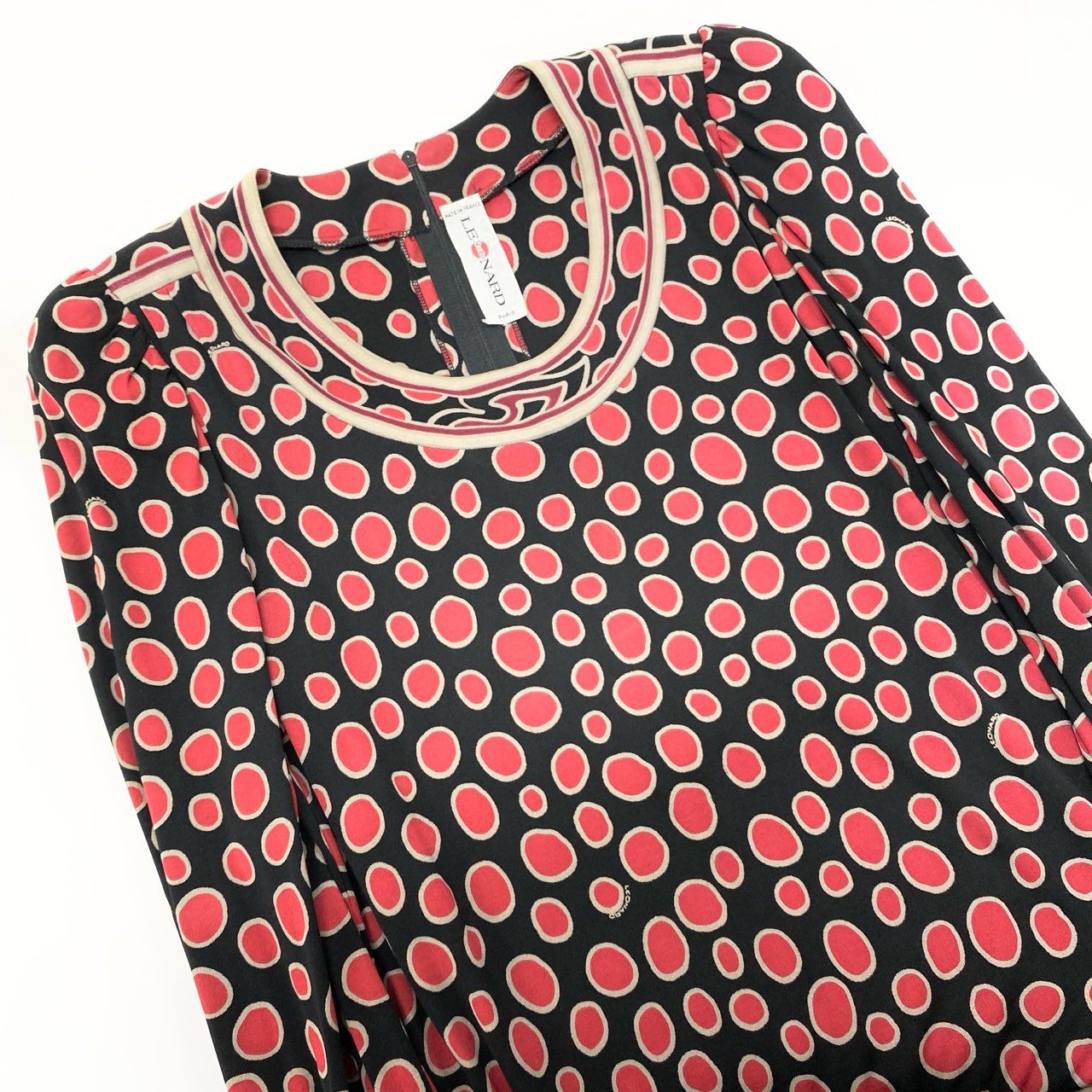 20L2 フランス製 LEONARD レオナール 長袖ワンピース ロングワンピース トップス ドット柄 ブラック レッド レディースu02t