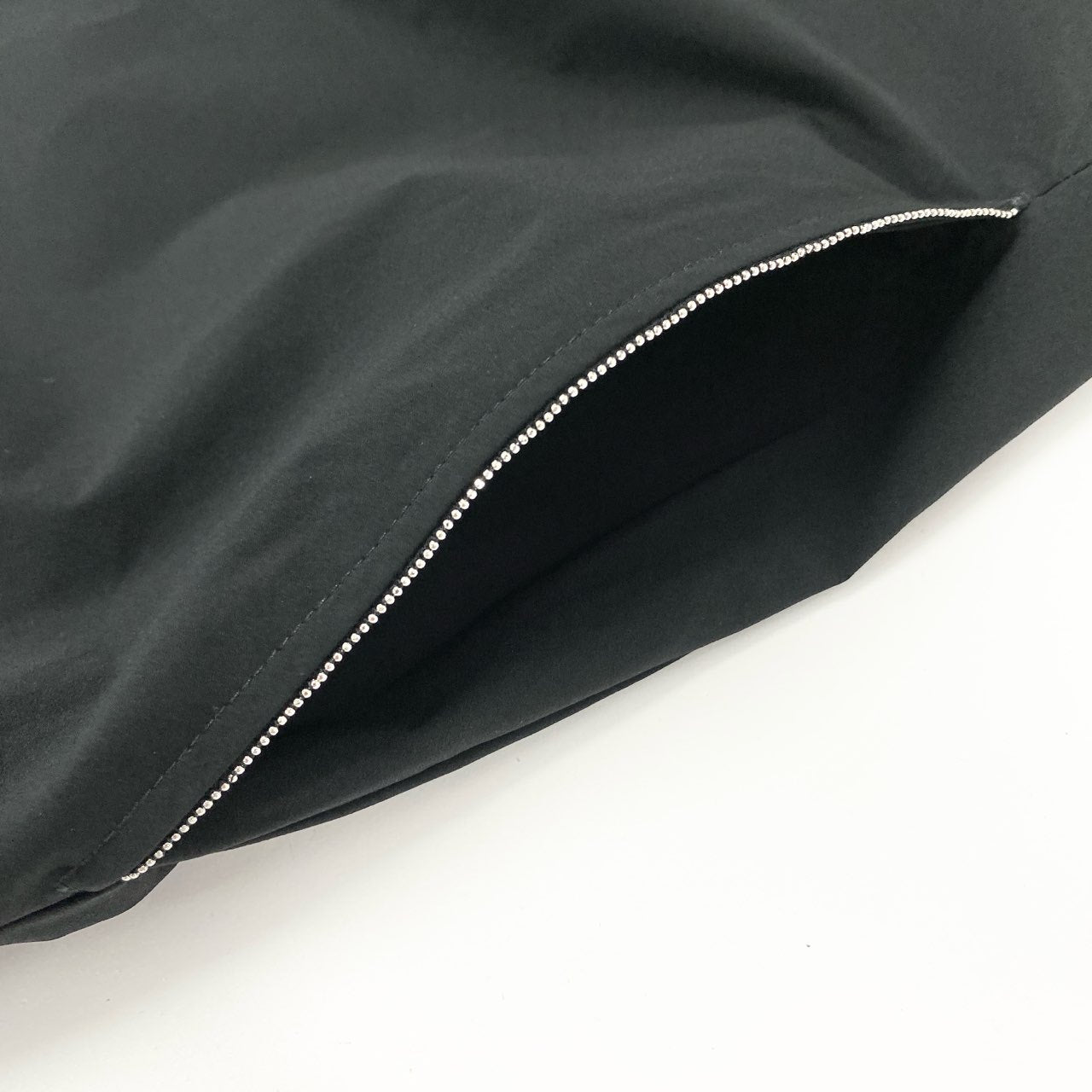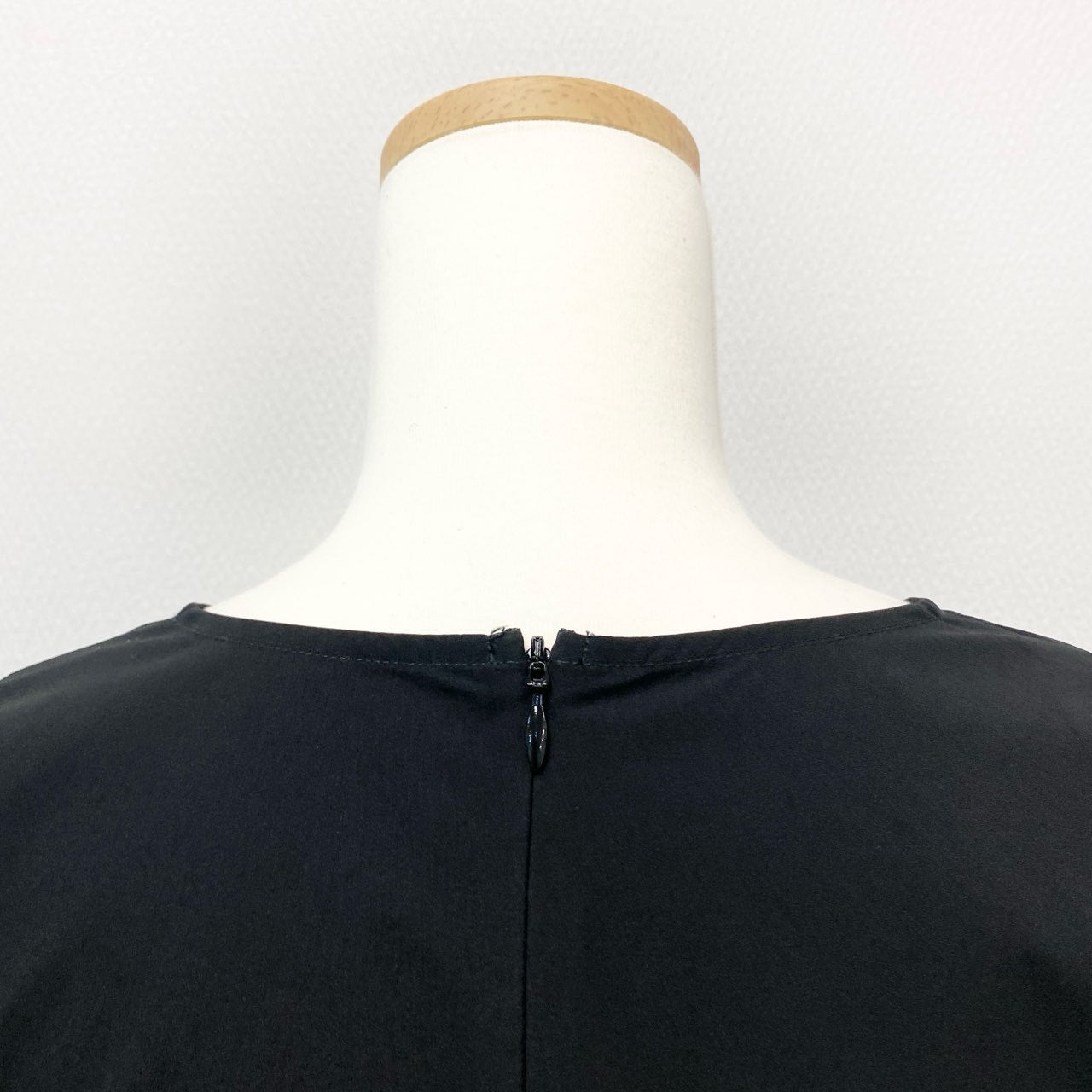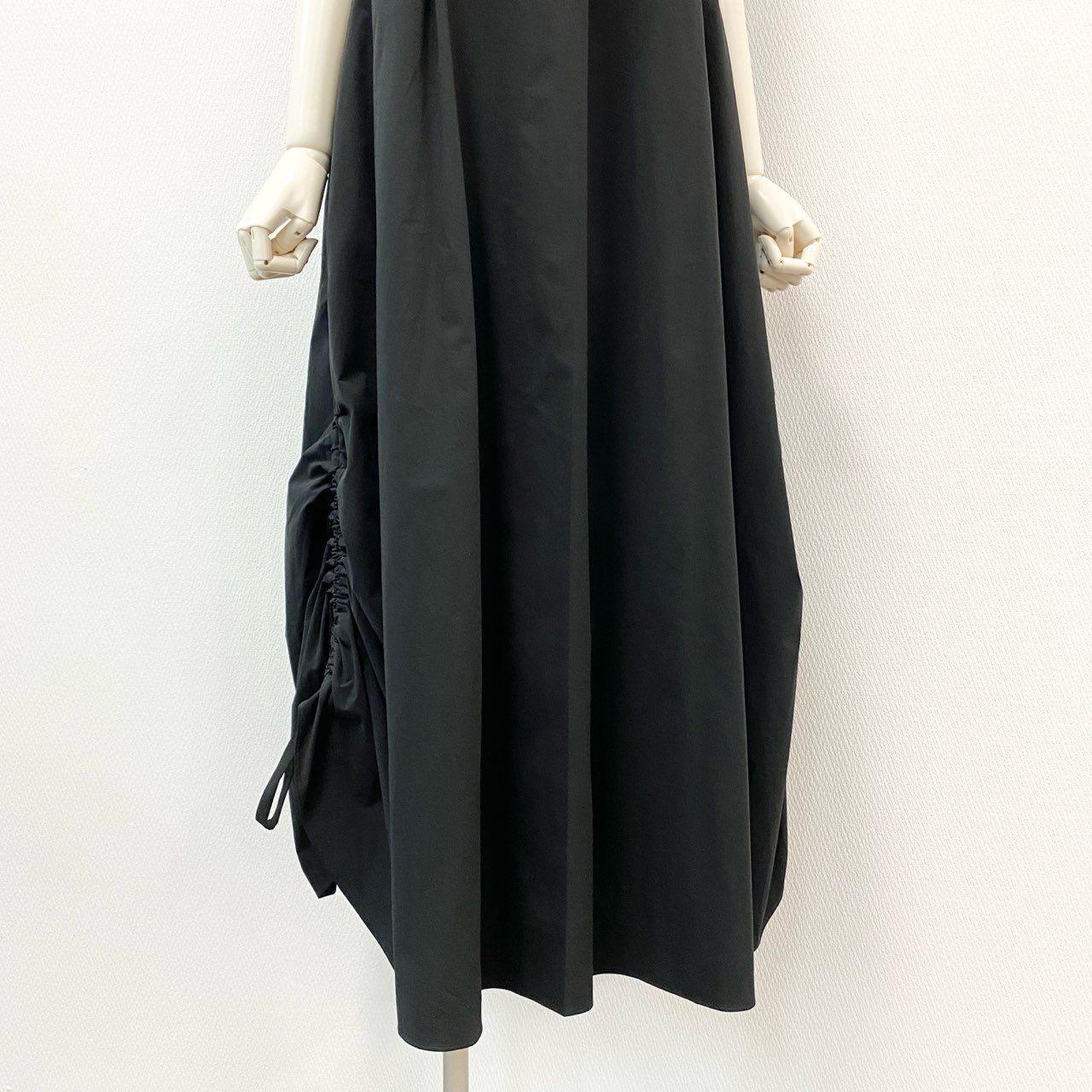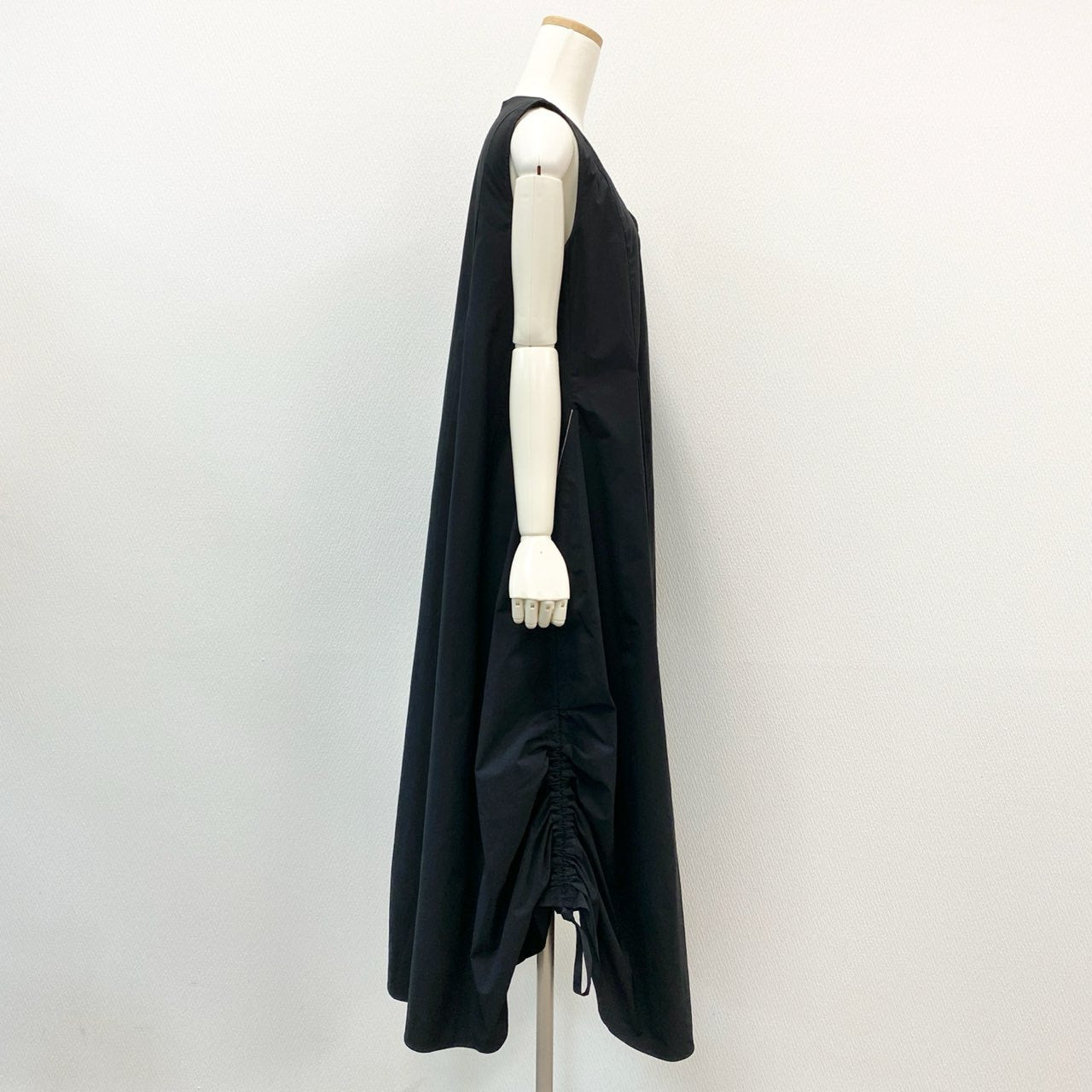 モラビトの「ノースリーブワンピース」、カラーはシックなブラックです。Vネックとサイドドロスト仕様が特徴で、シルエットに変化をつけられるデザイン性があります。軽やかでマットな質感の素材が上品な印象を与え、日常使いからディナーやお出かけシーンまで幅広く活躍。装飾にはさりげないラインストーンが施され、華やかさをプラスしています。シンプルながらも洗練された存在感を放つ一着です。