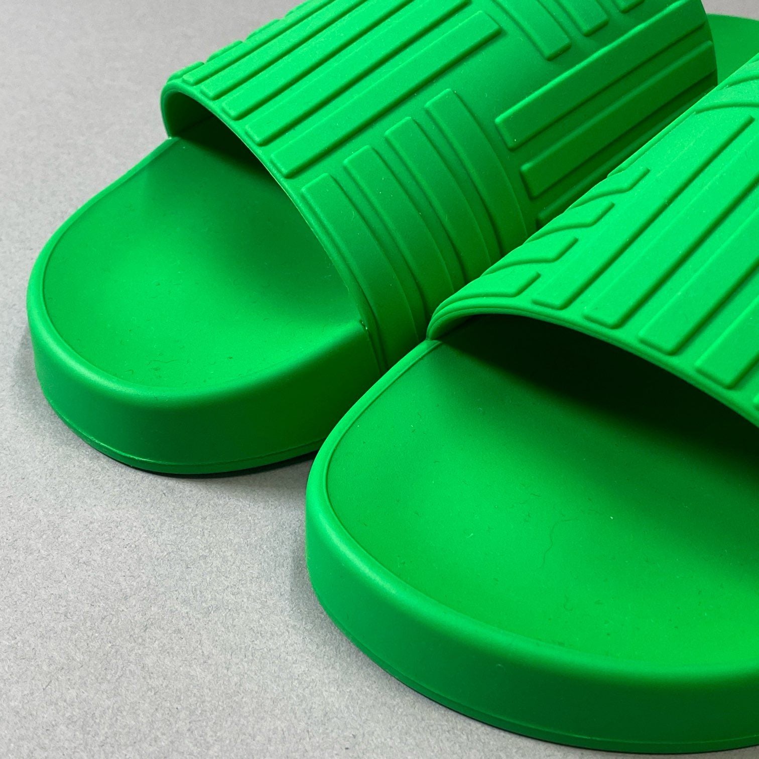 ボッテガ・ヴェネタの「690039 V1O60」モデル、鮮やかなボッテガグリーンが印象的なビーチサンダルです。無地ながら立体的なラインパターンが施され、シンプルながらもモードな存在感を放ちます。素材はラバー製で、軽量かつ水に強く、夏のビーチやリゾートはもちろんタウンユースにも最適。ブランドらしい洗練されたカラーリングで、カジュアルなスタイリングを一気に格上げしてくれるアイテムです。