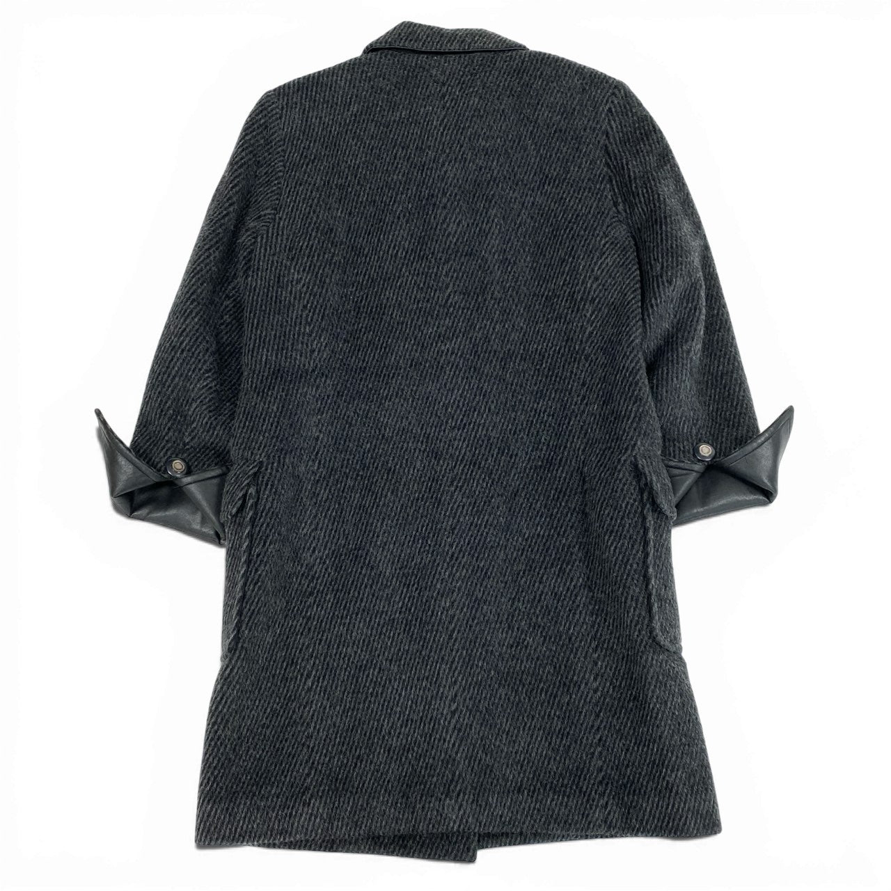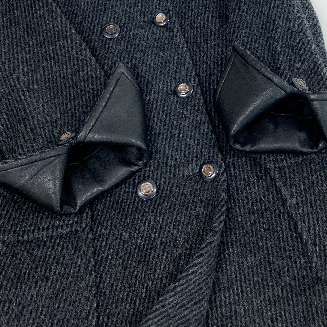 落ち着いたダークグレーカラーが上品な、Mademoiselle Diorのダブルブレストウールコートです。マットな質感のアルパカ・モヘア混ウール素材で、あたたかみと高級感を兼ね備えています。クラシカルなダブルブレスト仕様に、さりげない立体感のある織り柄が特徴。通勤やお出かけ、きれいめカジュアルまで、大人の冬スタイルに幅広く活躍する一着です。