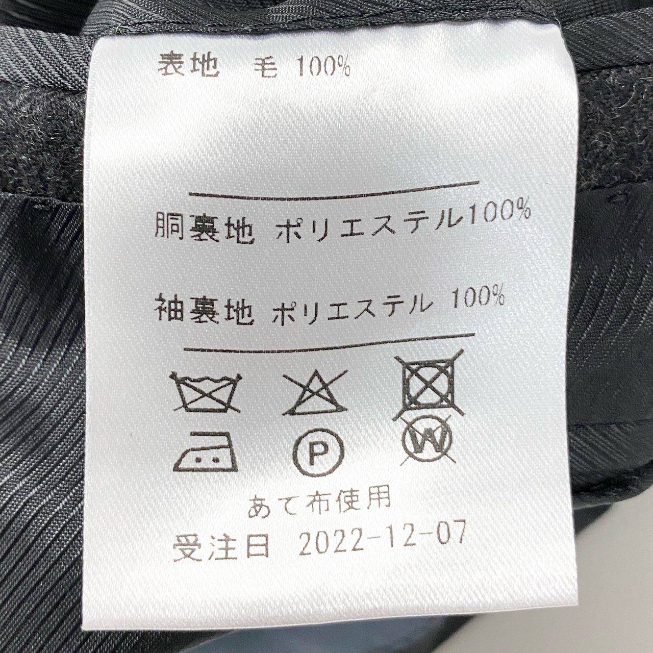 着丈はヒップがしっかり隠れる長さで、ビジネススーツとして標準的なバランスです。