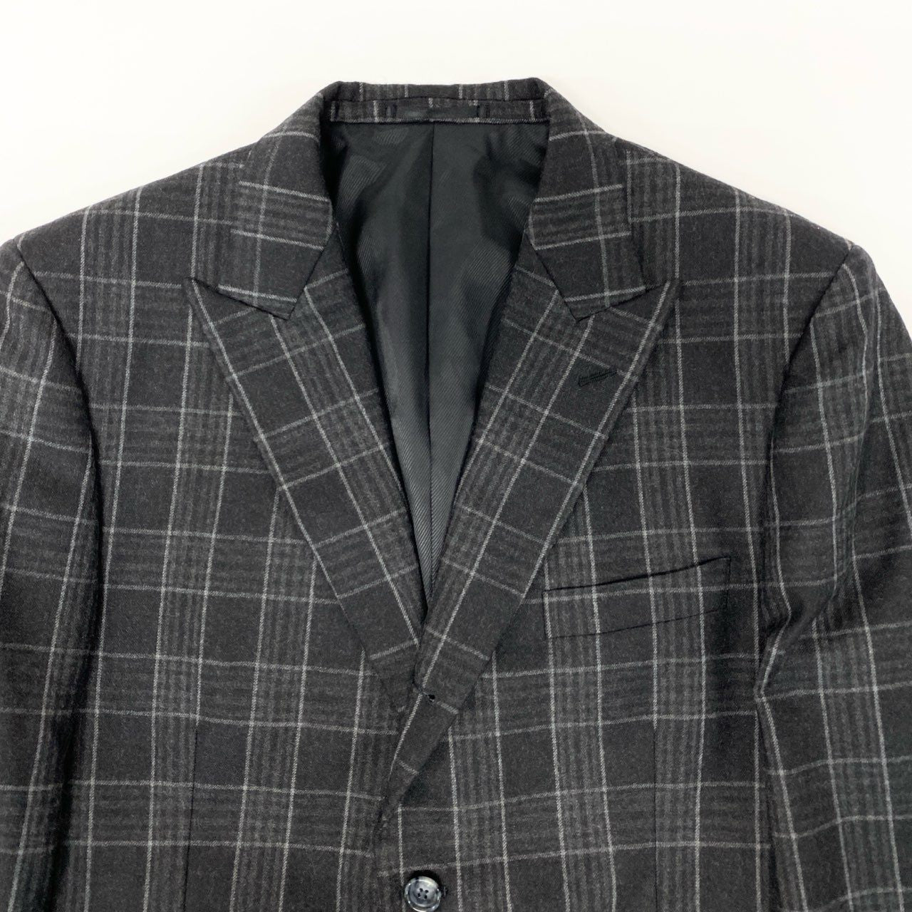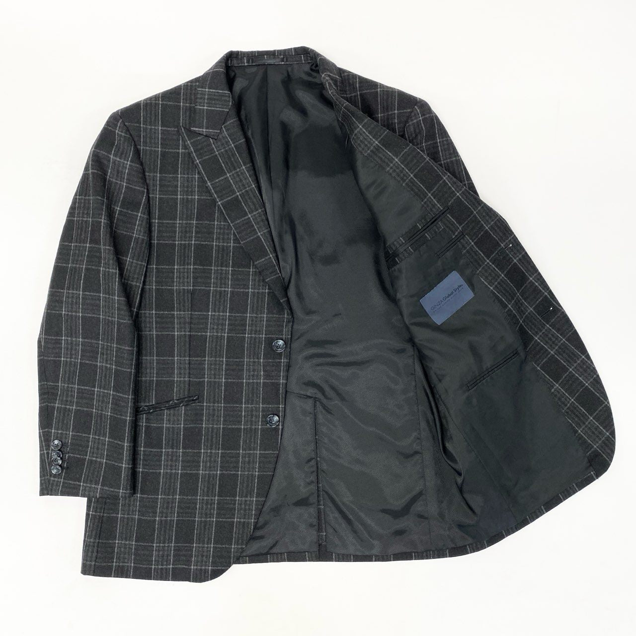 4k23 GINZA Global Style 銀座グローバルスタイル 英国製生地 JOHN FOSTER セットアップスーツ シングル 2B チェック柄 メンズ 紳士服 ダークグレー ウールu02t