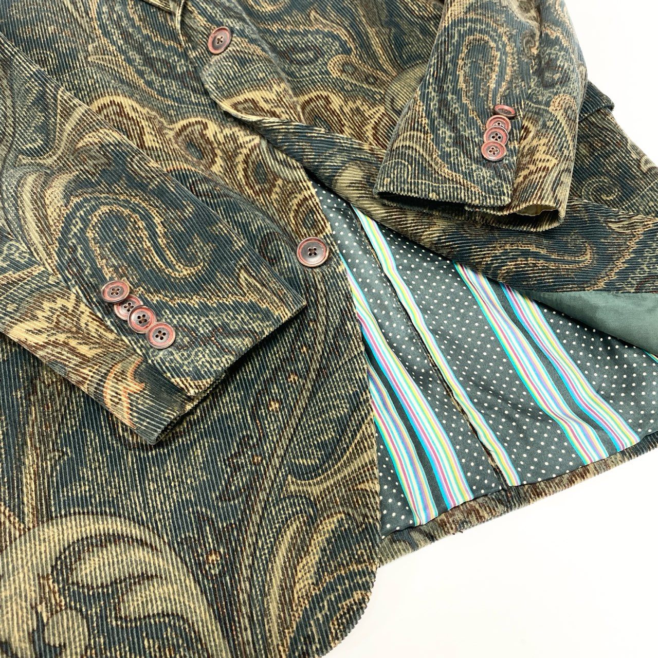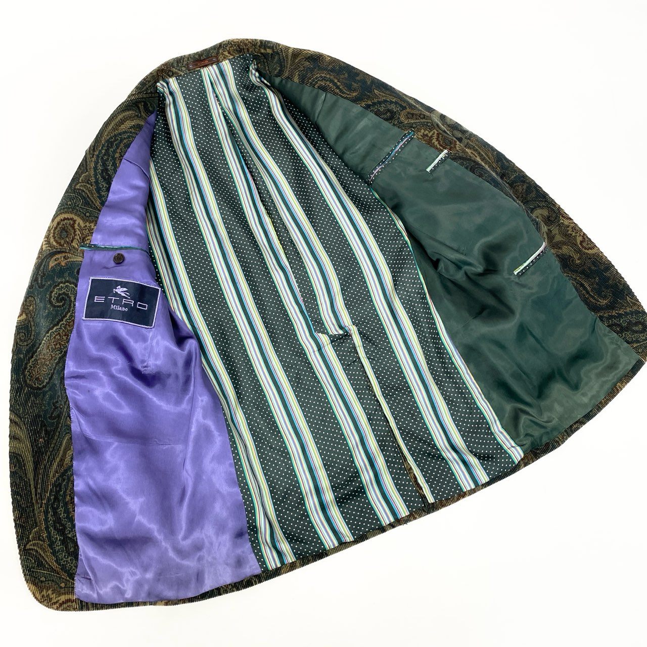 30K18 ETRO エトロ イタリア製 テーラードジャケット コーデュロイジャケット ペイズリー柄 裏地総柄 メンズ 紳士服 48 ダークグリーン系u02t