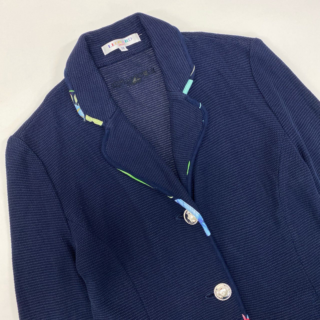 40k18 LEONARD レオナール テーラードジャケット ニットジャケット パイピング 0537892 38サイズ ネイビー レディースu02t